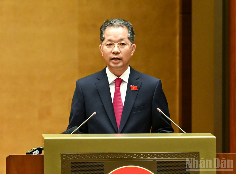 Chánh án Tòa án nhân dân tối cao Nguyễn Văn Quảng phát biểu trước Quốc hội. (Ảnh: DUY LINH)