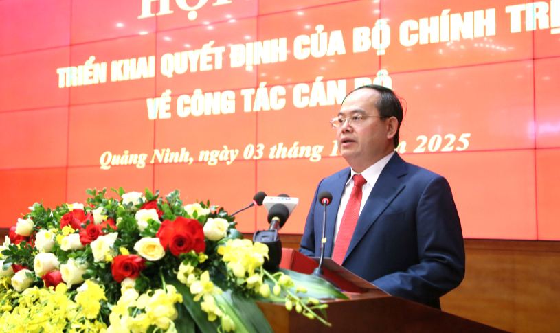 Tại hội nghị, Ban Tổ chức Trung ương công bố Quyết định số 2568-QĐNS/TW ngày 28/11/2025 của Bộ Chính trị quyết định điều động ông Quản Minh Cường thôi tham gia Ban Chấp hành, Ban Thường vụ Tỉnh ủy và thôi giữ chức Bí thư Tỉnh ủy Cao Bằng nhiệm kỳ 2025 - 2030; điều động, chỉ định tham gia Ban Chấp hành, Ban Thường vụ Tỉnh ủy, giữ chức vụ Bí thư Tỉnh ủy Quảng Ninh nhiệm kỳ 2025 - 2030 và chỉ định tham gia Đảng ủy Quân khu 3.