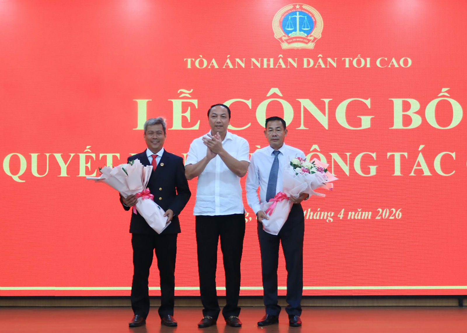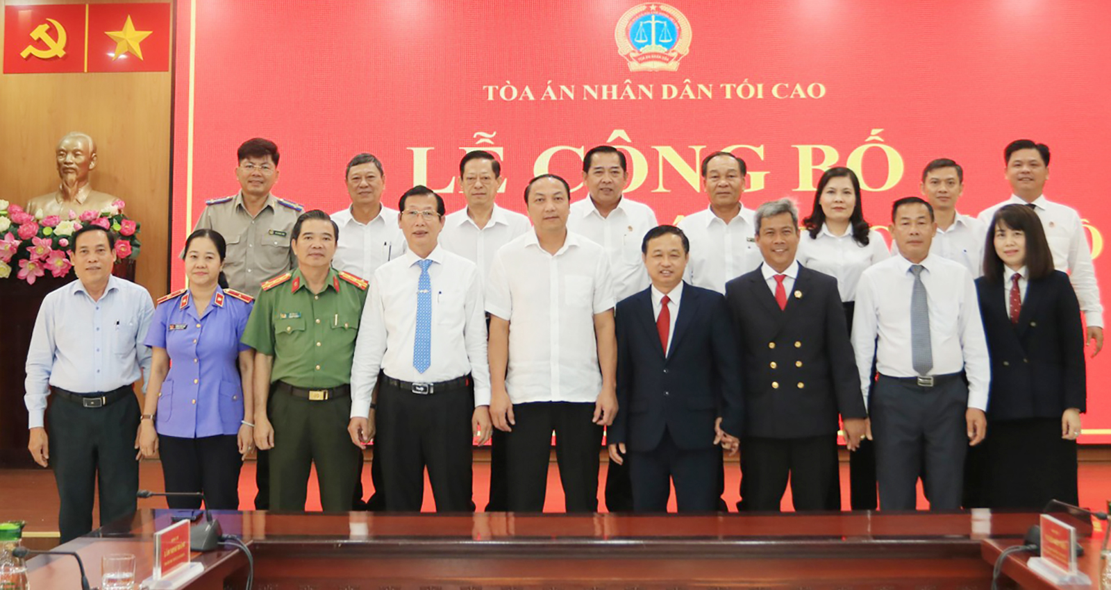 Ủy viên Ban Thường vụ Đảng ủy, Phó Chánh án Tòa án nhân dân tối cao Nguyễn Biên Thùy; Phó Bí thư Tỉnh ủy An Giang Lâm Minh Thành và Phó Chủ tịch UBND tỉnh An Giang Lê Văn Phước dự lễ.