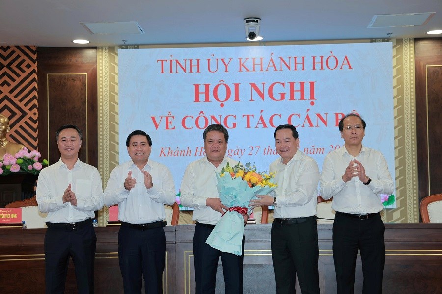 Lãnh đạo tỉnh Khánh Hòa tặng hoa chúc mừng tân Bí thư Tỉnh ủy Khánh Hòa Trần Phong