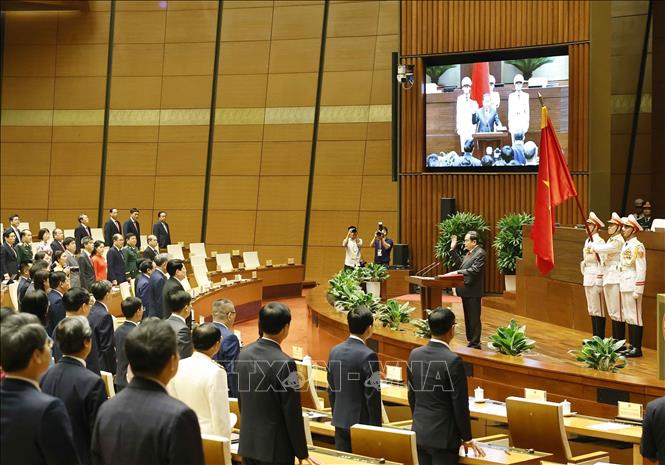 Đồng chí Trần Thanh Mẫn tuyên thệ nhậm chức Chủ tịch Quốc hội khóa XVI. Ảnh: Thống Nhất/TTXVN