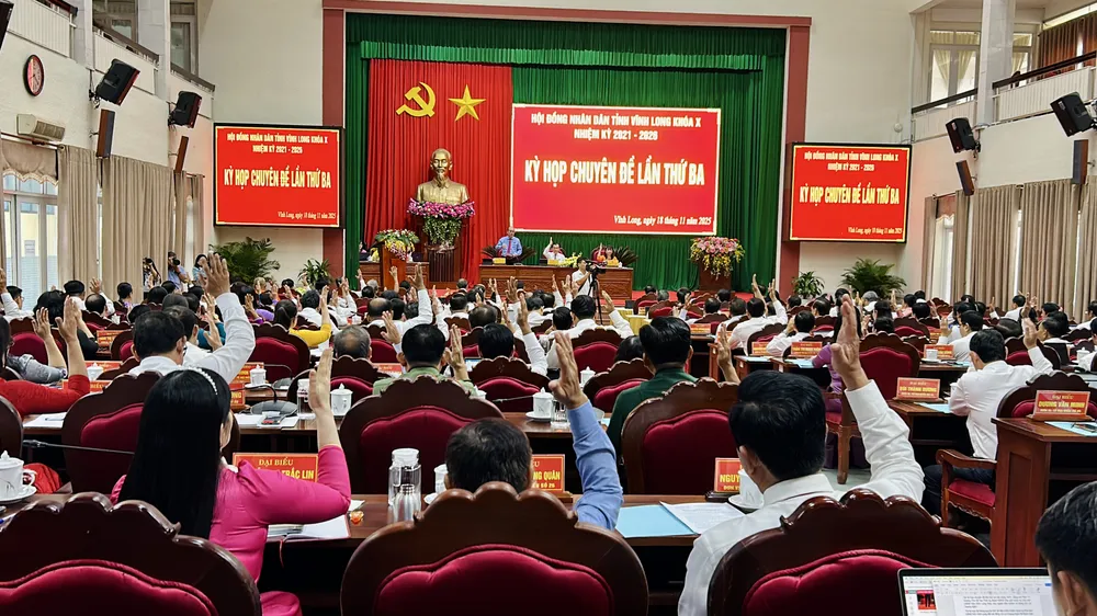 Sáng 18-11, HĐND tỉnh Vĩnh Long Khóa X nhiệm kỳ 2021-2026 tổ chức kì họp chuyên đề thứ 3 để quyết nghị công tác nhân sự và một vấn đề thuộc thẩm quyền thuộc HĐND tỉnh.