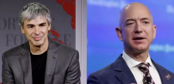 Đồng sáng lập Google Larry Page (trái) vừa vượt qua ông chủ Amazon Jeff Bezos trong danh sách siêu giàu, nhờ một đột phá mới về trí tuệ nhân tạo. Ảnh: Indian Times