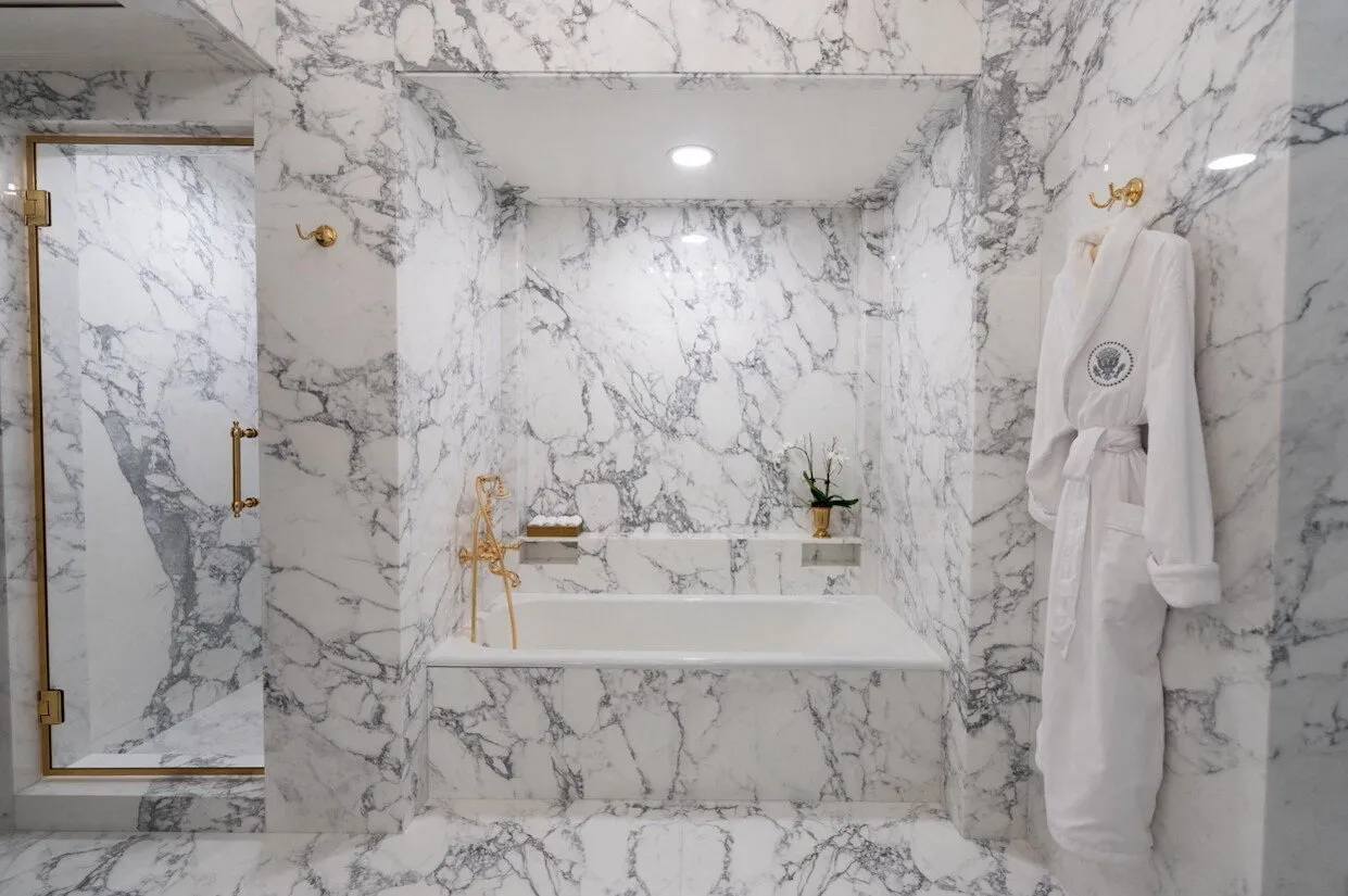 Phòng tắm mới sau khi cải tạo. Ảnh: Truth Social