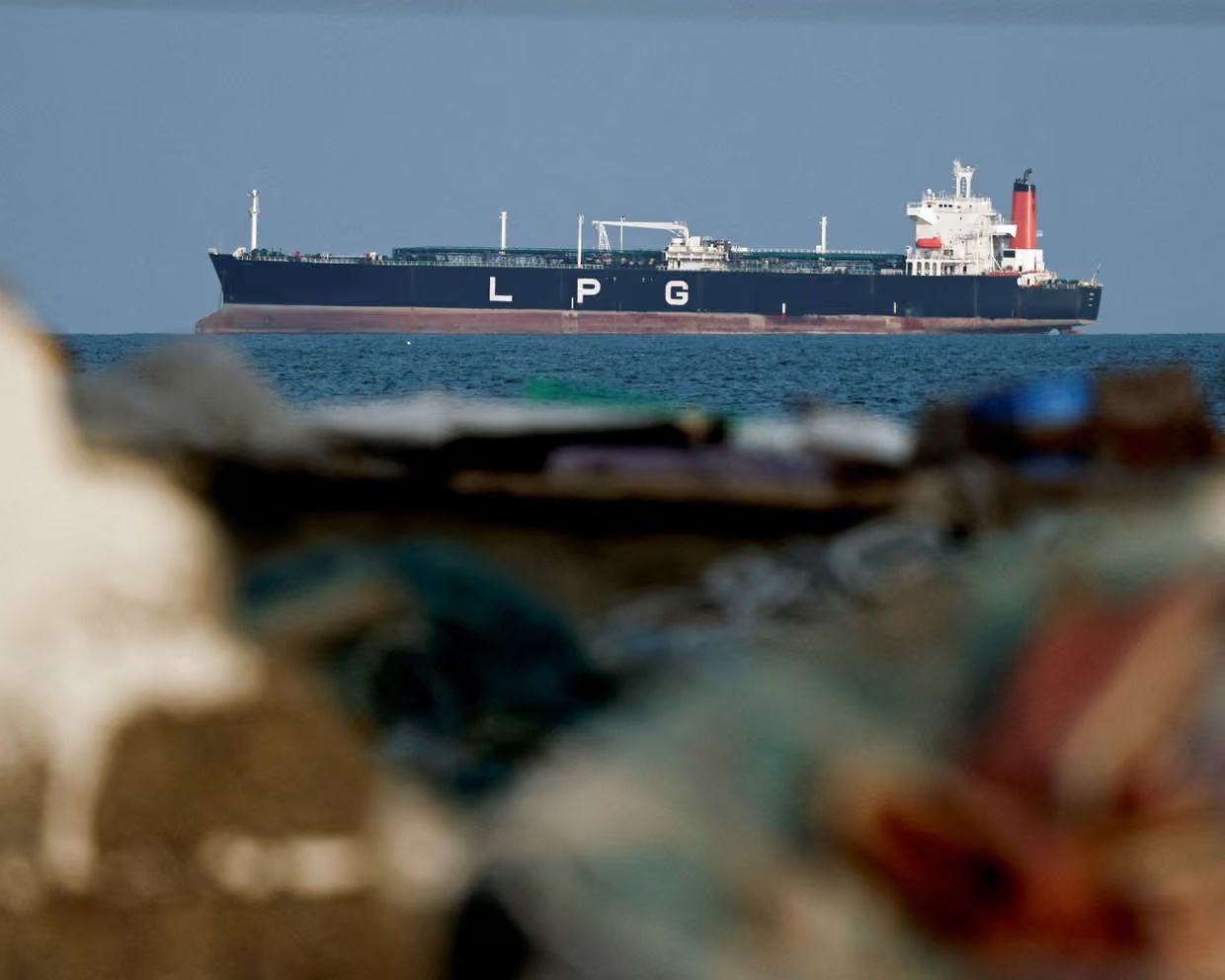 Một tàu chở khí LPG neo đậu tại eo biển Hormuz trong thời gian Iran phong tỏa. Ảnh: Reuters.