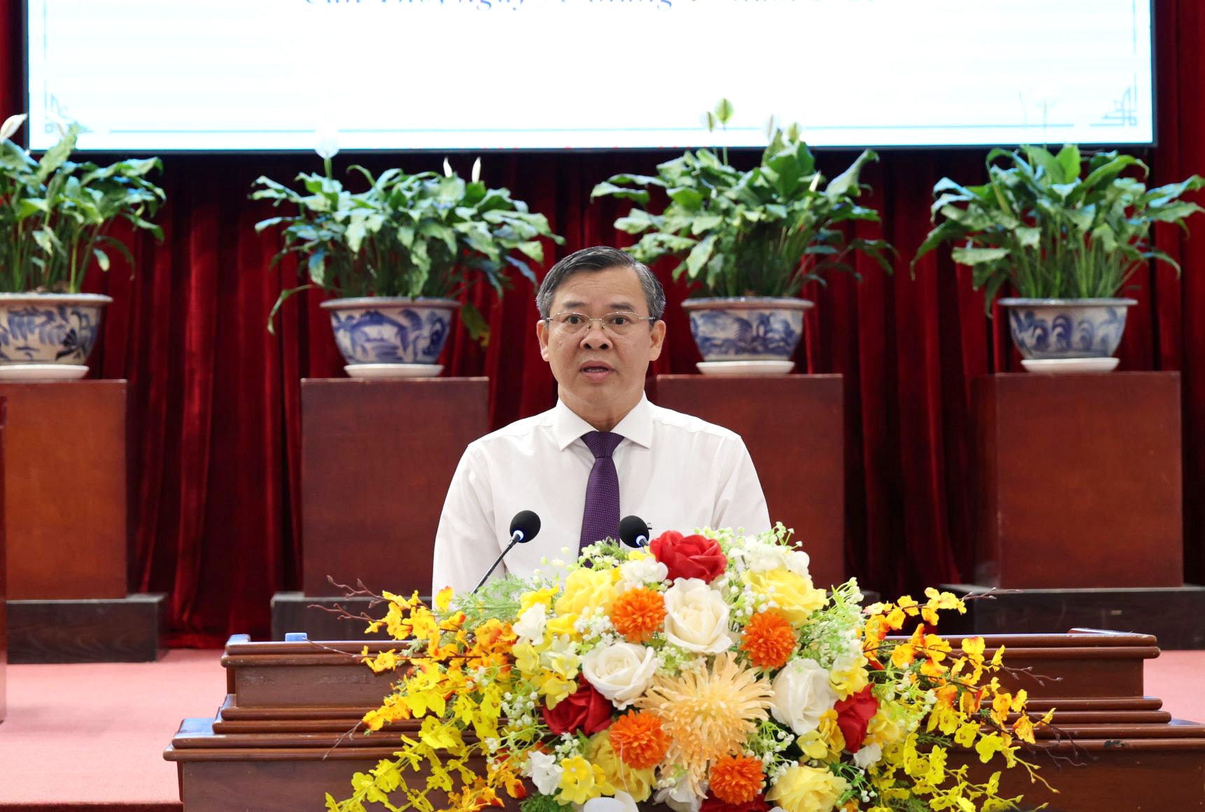 Chủ tịch UBND thành phố Cần Thơ Trương Cảnh Tuyên phát biểu nhận nhiệm vụ.