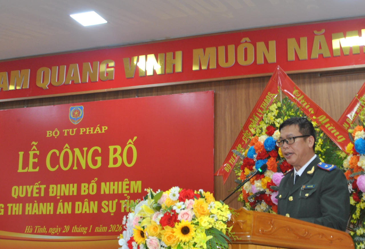 Lãnh đạo Cục Quản lý THADS nhấn mạnh, năm 2025 là năm có ý nghĩa hết sức đặc biệt với nhiều sự kiện quan trọng, nhất là cuộc cách mạng về sắp xếp bộ máy, thực hiện mô hình chính quyền địa phương hai cấp. Trong bối cảnh đó, hệ thống THADS cũng đã được sắp xếp, tổ chức lại theo mô hình mới. Đối với THADS Hà Tĩnh là đơn vị được tổ chức lại từ Cục THADS tỉnh Hà Tĩnh, cơ cấu tổ chức gồm 4 phòng chuyên môn và 5 phòng THADS khu vực. Để cũng cố kiện toàn vị trí lãnh đạo, Bộ trưởng Bộ Tư pháp đã bổ nhiệm đồng chí Trương Công Hoàng, Quyền trưởng THADS tỉnh giữ chức Trưởng THADS Hà Tĩnh từ ngày 20/1/2026.