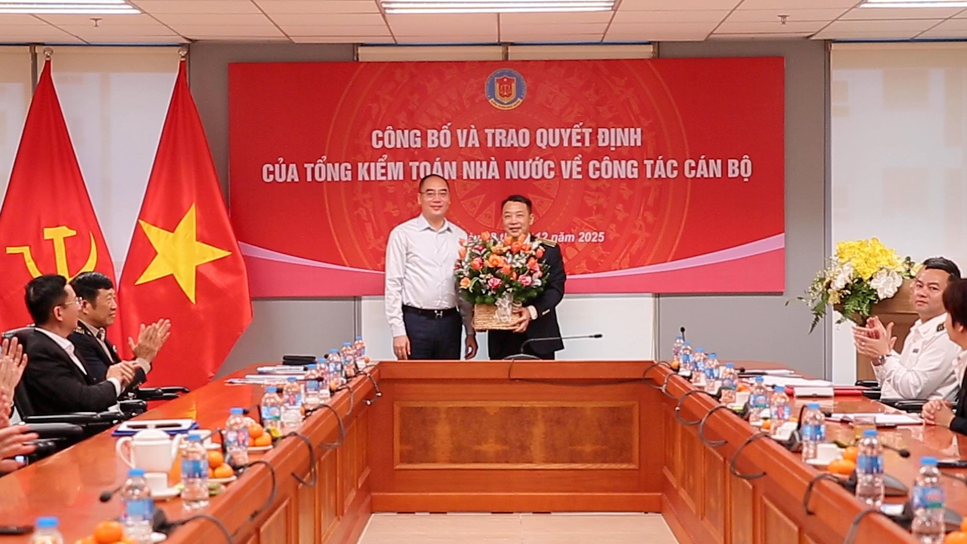 Thừa ủy quyền của Tổng Kiểm toán nhà nước, Phó Tổng Kiểm toán nhà nước Bùi Quốc Dũng đã trao Quyết định, tặng hoa chúc mừng và giao nhiệm vụ cho ông Vũ Mạnh Hà.