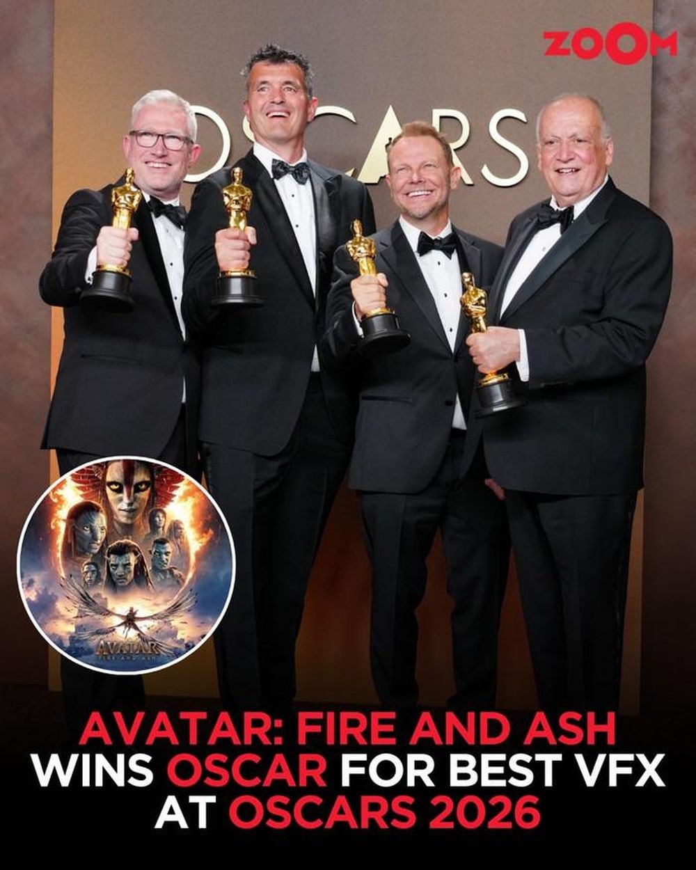 Nhóm giám sát kỹ xảo Joe Letteri, Richard Baneham, Eric Saindon và Daniel Barrett nhận Oscar cho Avatar: Fire and Ash