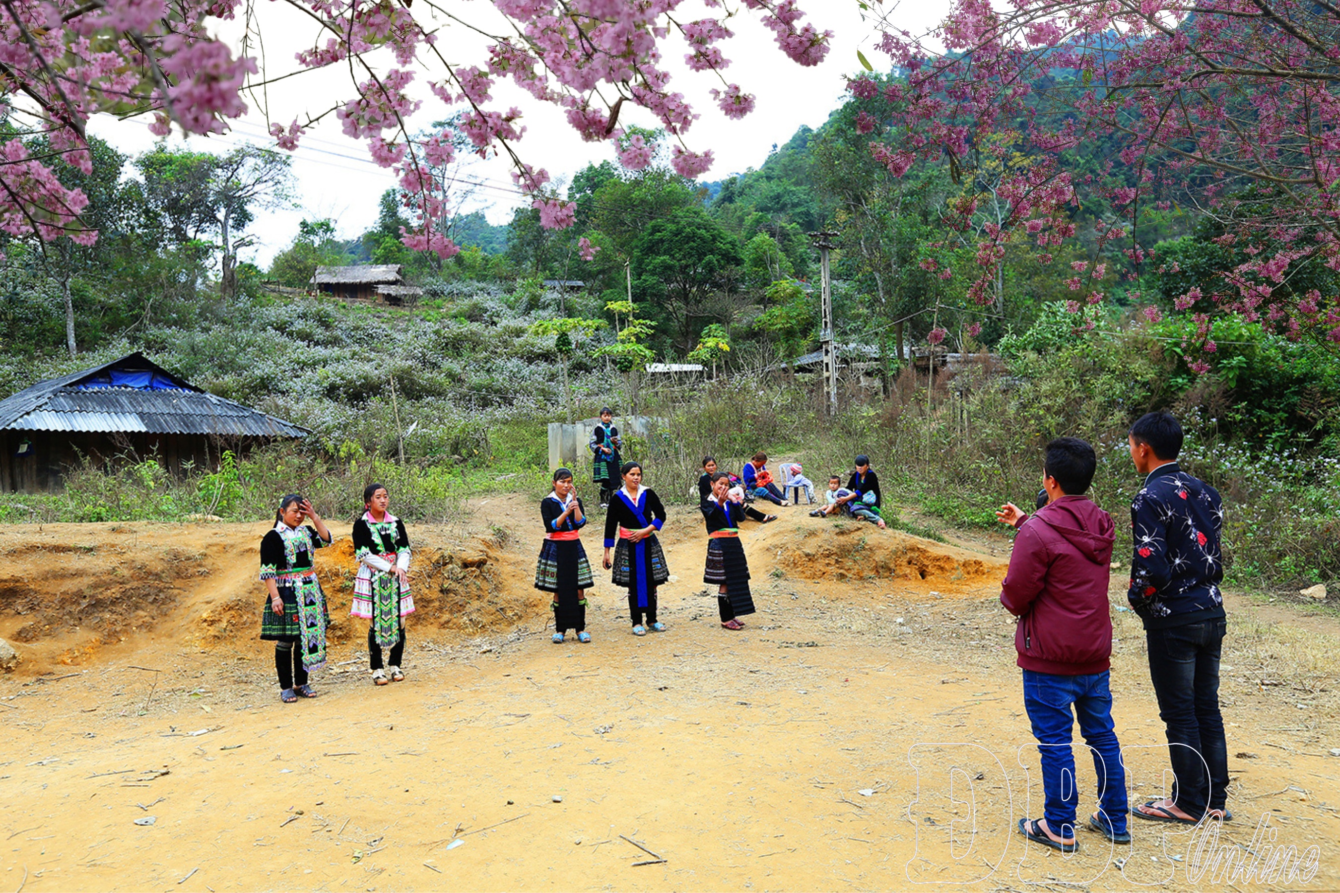 Mùa hoa Tớ Dày đi qua rất nhanh, vẫn luôn để lại dấu ấn đặc biệt ở vùng cao. Khi những cánh hoa cuối cùng rơi xuống, trải thảm hồng trên những con đường mòn, cũng là lúc các lễ hội du xuân chính thức bắt đầu trên khắp các bản làng vùng cao. Bà con gác lại chuyện nương rẫy, nô nức chuẩn bị váy áo, cùng nhau tụ tập chơi Pa Pao, ném Tù Lu, thổi khèn... Tiếng cười nói rộn rã hòa cùng tiếng khèn Mông réo dắt tạo nên một bức tranh văn hóa giàu bản sắc mà đầy sức sống. Đó cũng là thời điểm, thiên nhiên và con người cùng ngân lên khúc hát gọi xuân về…