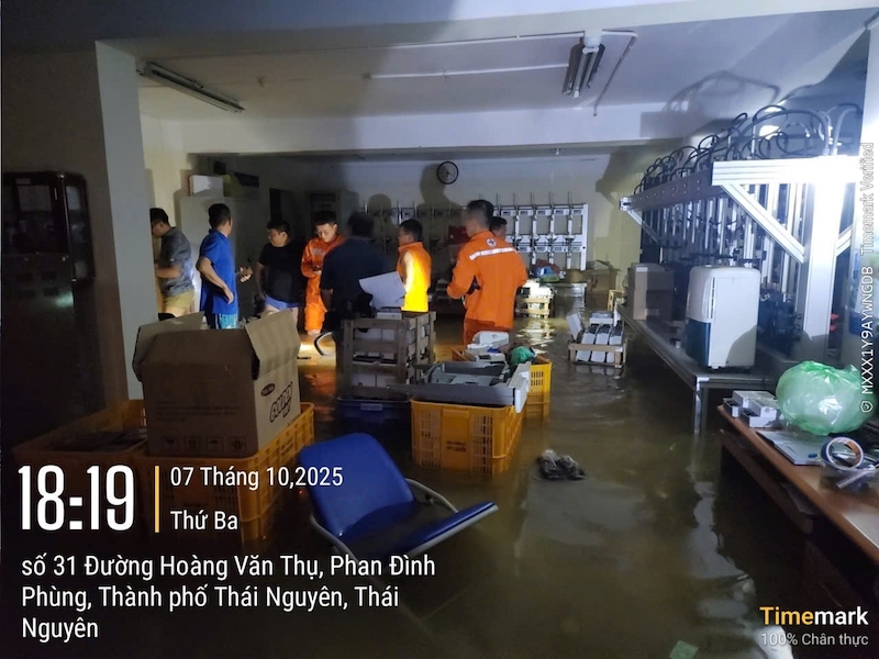Đến sáng 8/10, đơn vị đã đóng điện thành công máy biến áp T2 (63 MVA) tại trạm biến áp 110 kV Thịnh Đán, khôi phục cấp điện cho một phần khu vực trung tâm TP. Thái Nguyên. Nhiều tổ đội vẫn đang túc trực 24/24h tại các điểm ngập sâu chờ nước rút để kiểm tra, thống kê và khôi phục cấp điện.