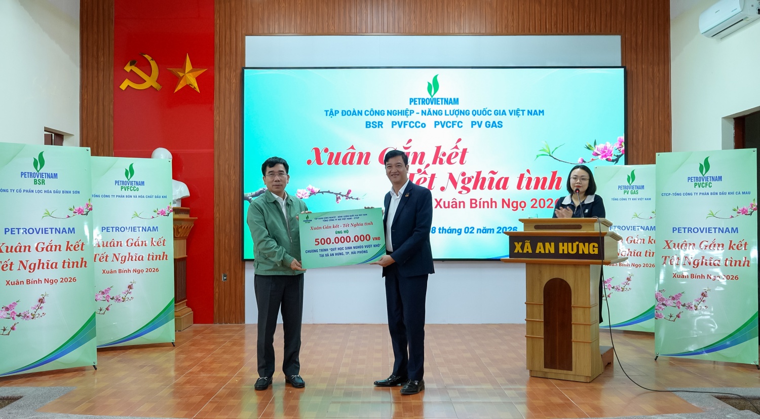 Riêng với xã An Hưng, trong khuôn khổ chương trình an sinh xã hội “Petrovietnam: Xuân Gắn kết - Tết Nghĩa tình”, Petrovietnam và các đơn vị thành viên đã ủng hộ tổng kinh phí 1,4 tỷ đồng. Trong đó, chương trình “Tết vì người nghèo” có sự đồng hành của: Công ty Cổ phần Lọc hóa dầu Bình Sơn (BSR) ủng hộ 350 triệu đồng; Tổng công ty Phân bón và Hóa chất Dầu khí (PVFCCo - Phú Mỹ) ủng hộ 350 triệu đồng; Tổng công ty Phân bón Dầu khí Cà Mau (PVCFC) ủng hộ 200 triệu đồng. Bên cạnh đó, Tổng công ty Khí Việt Nam (PV GAS) ủng hộ 500 triệu đồng cho "Quỹ học sinh nghèo vượt khó" của địa phương.