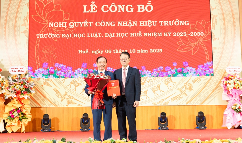 Trước đó, ngày 5/9/2025, Hội đồng Đại học Huế ban hành Nghị quyết số 55/NQ-HĐĐH về việc công nhận Hiệu trưởng Trường Đại học Luật, Đại học Huế nhiệm kỳ 2025 - 2030. Theo đó, PGS.TS. Đoàn Đức Lương - Nhà giáo ưu tú, giảng viên cao cấp, hiệu trưởng nhiệm kỳ 2020 - 2025, tiếp tục được tín nhiệm giữ chức vụ Hiệu trưởng Trường Đại học Luật, Đại học Huế nhiệm kỳ 2025 - 2030.