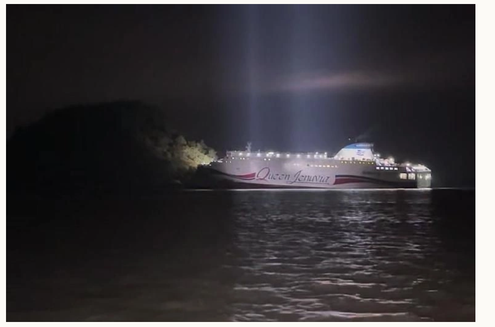 Phà Queen Jenuvia mắc cạn gần đảo Jangsan thuộc huyện Sinan ngày 19/11. (Ảnh: Cảnh sát biển Hàn Quốc)