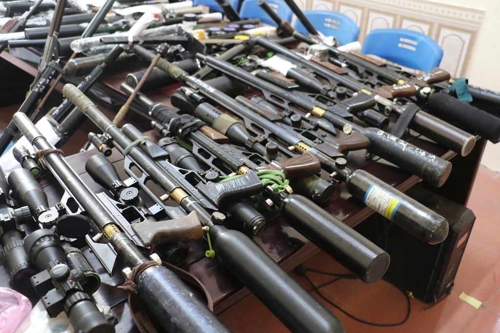 Tang vật thu giữ: 64 khẩu súng quân dụng, 28.720 viên đạn thuộc danh mục vũ khí quân dụng, 24 khẩu súng là công cụ hỗ trợ, 1.260 viên đạn bi và đạn cao su; 2 laptop, 42 điện thoại di động và các đồ vật khác có liên quan. Căn cứ các tài liệu thu thập được, Cơ quan CSĐT (Phòng Cảnh sát hình sự) Công an tỉnh đã ra Quyết định khởi tố vụ án, khởi tố 38 bị can về tội "Chế tạo, tàng trữ, vận chuyển, sử dụng, mua bán trái phép hoặc chiếm đoạt vũ khí quân dụng, phương tiện kỹ thuật quân sự", đồng thời tiếp tục tập trung đấu tranh, mở rộng chuyên án.