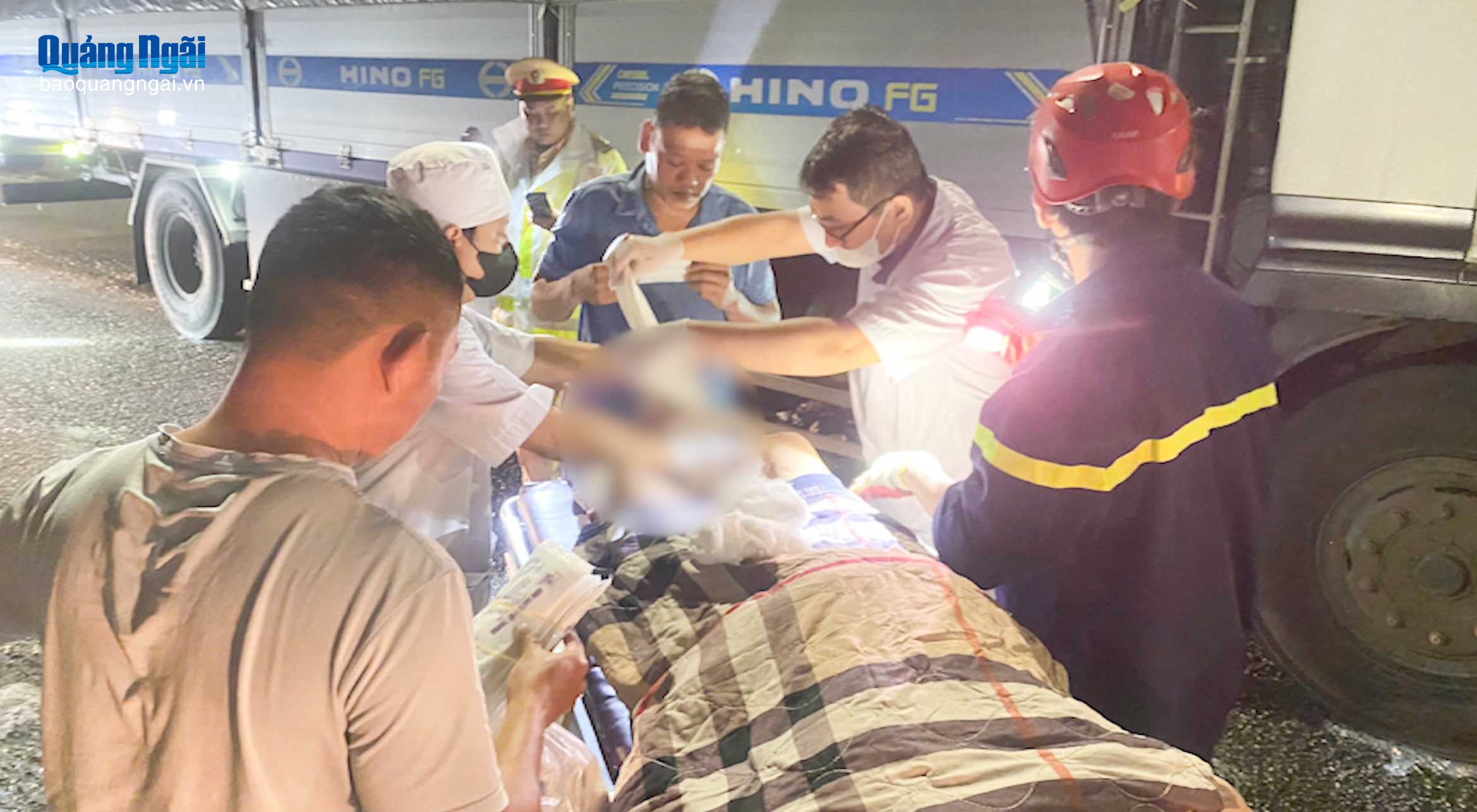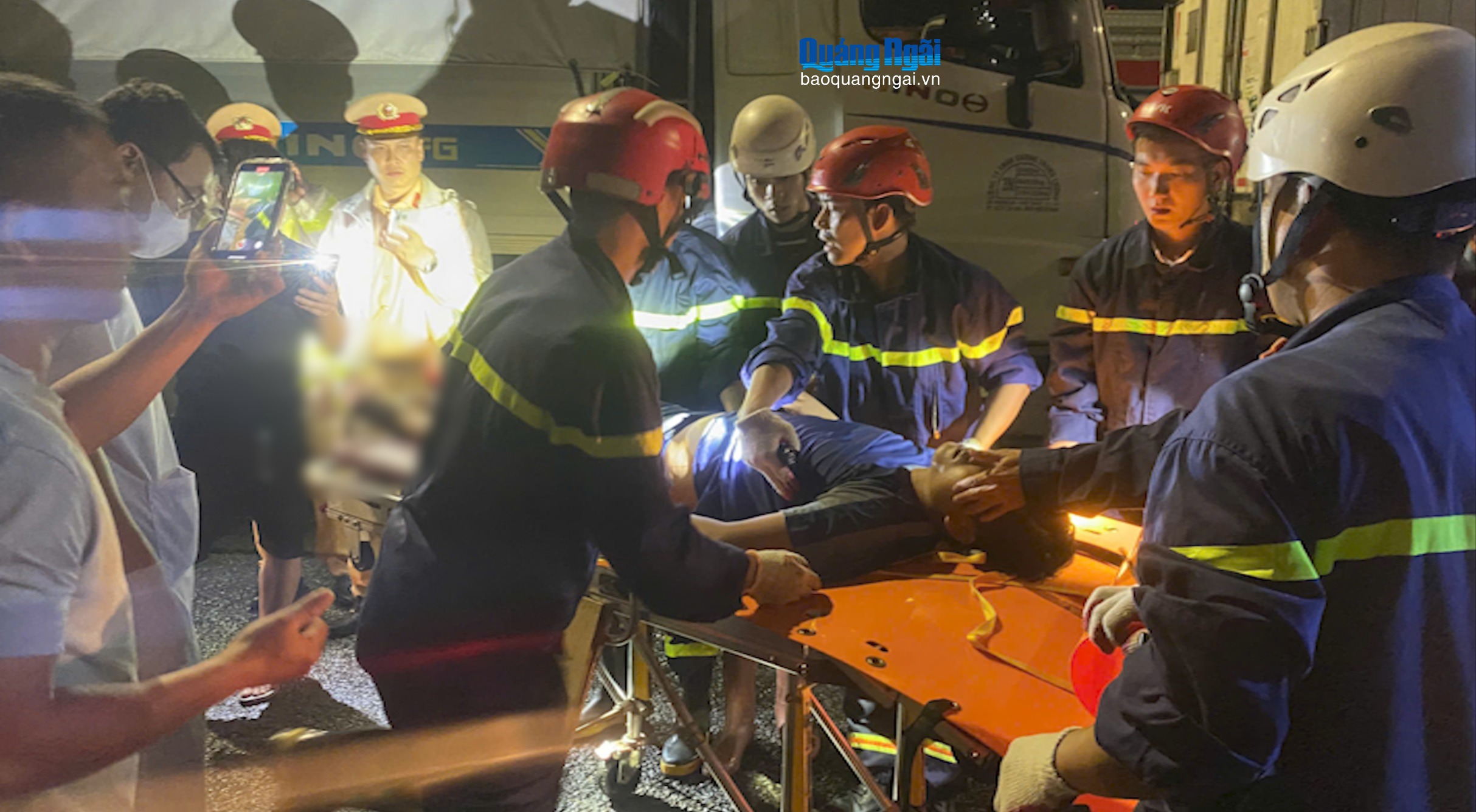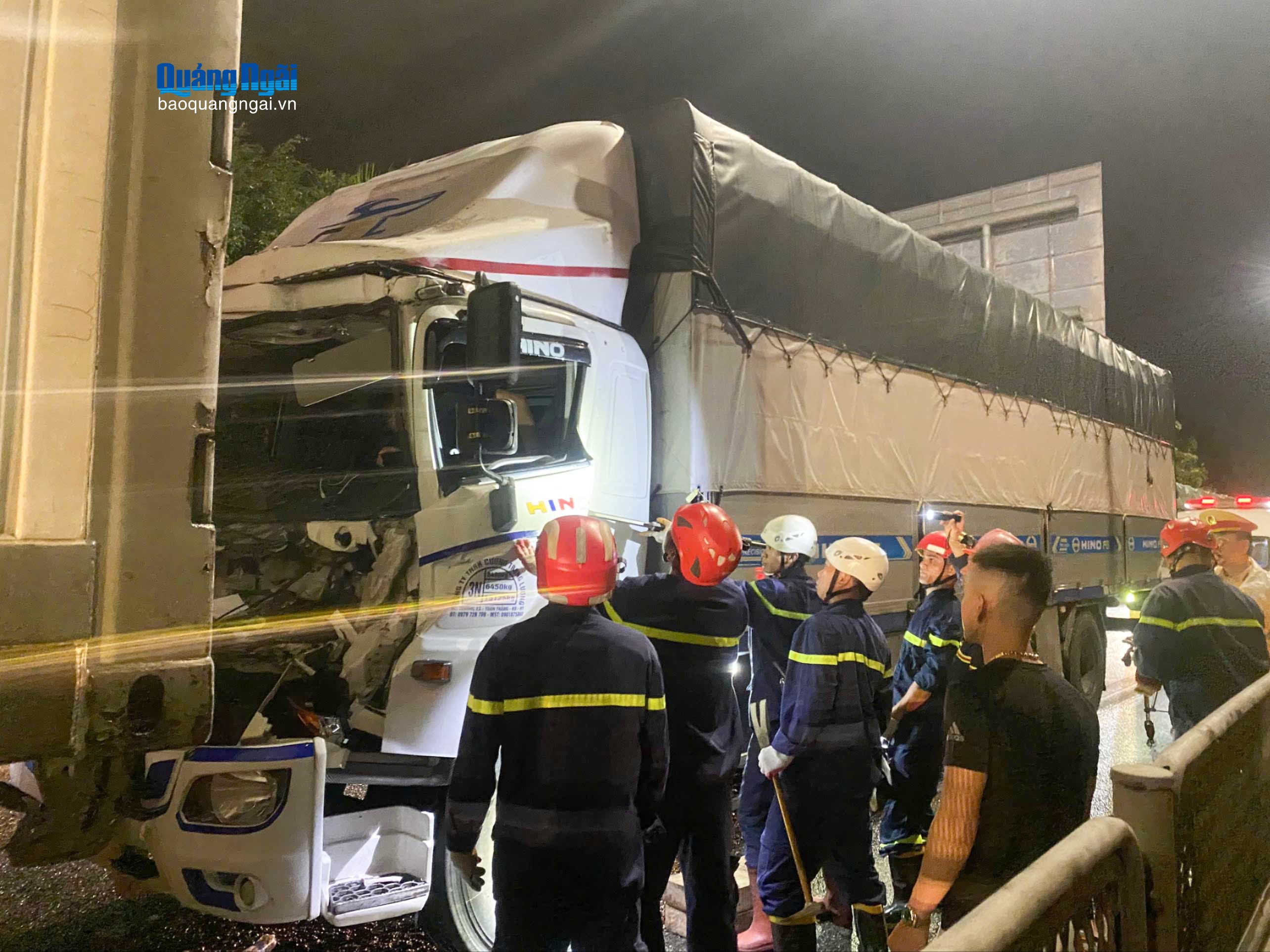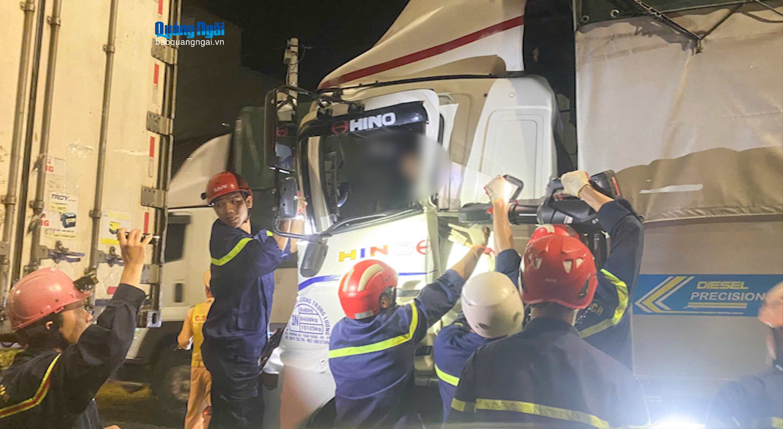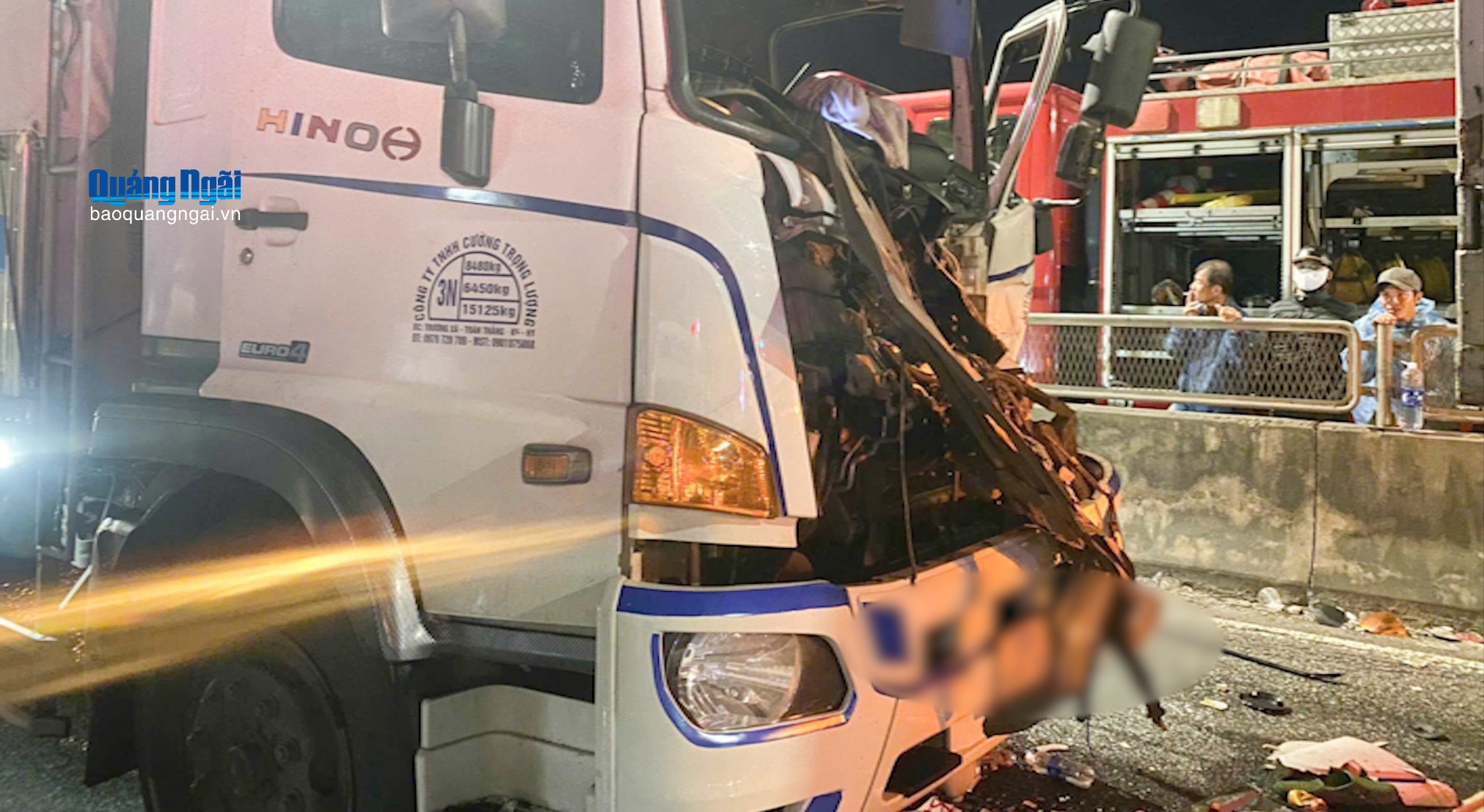 Trước đó, vào lúc 19 giờ 42 phút, tối 13/12, Phòng Cảnh sát PCCC và cứu nạn, cứu hộ (Công an tỉnh) nhận được tin báo về một vụ tai nạn giao thông xảy ra tại ngã ba đường dẫn vào cao tốc Đà Nẵng - Quảng Ngãi, thuộc địa phận xã Tư Nghĩa. Thời điểm trên, xe ô tô tải mang biển kiểm soát 89H - 005.XX đã va chạm vào phía sau sơ mi rơ moóc của xe container mang biển kiểm soát 51D - 602.XX.
