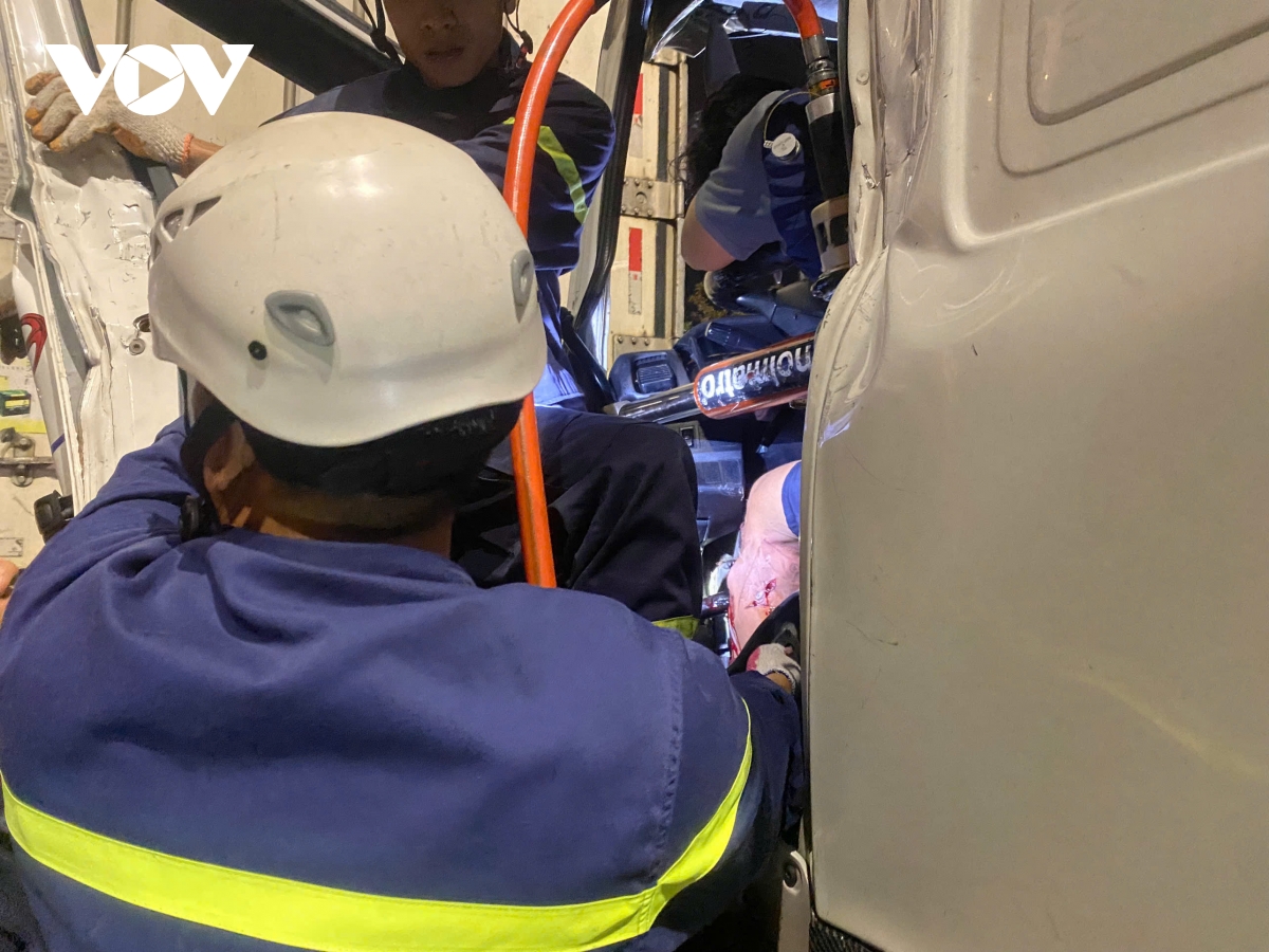 Chân của tài xế bị thương nặng, kẹt lại trong xe.