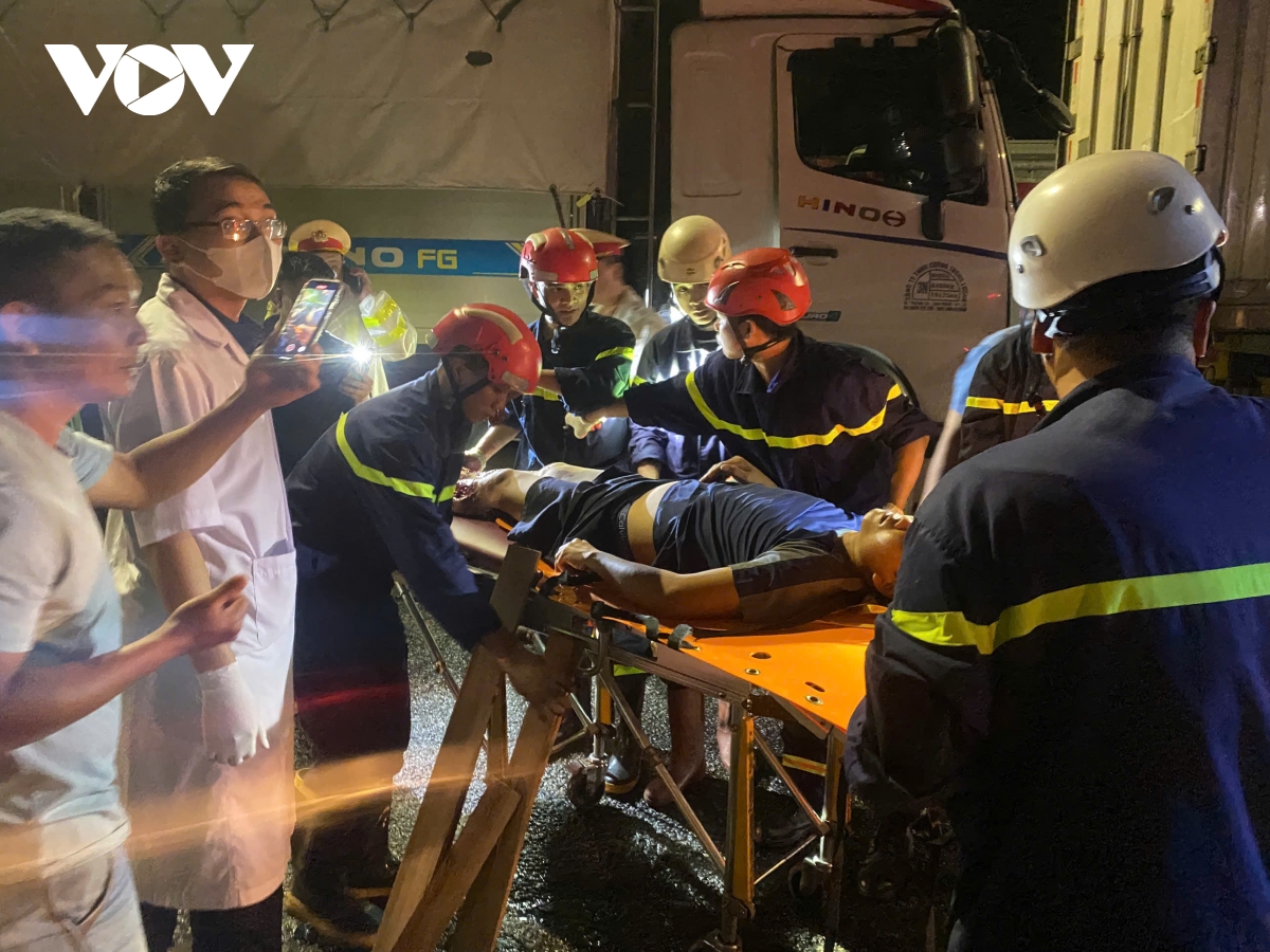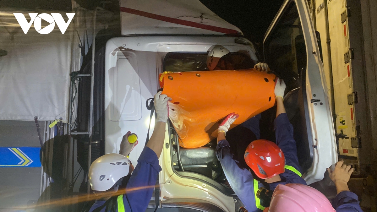 Đội Cứu nạn, cứu hộ khu vực 1, Phòng Cảnh sát Phòng Cháy chữa cháy và Cứu nạn cứu hộ Công an tỉnh Quảng Ngãi đã điều động 1 xe cứu nạn, cứu hộ, 1 xe chữa cháy cùng 12 cán bộ, chiến sĩ nhanh chóng đến hiện trường. Lực lượng chức năng triển khai đội hình, sử dụng thiết bị banh cắt thủy lực giải cứu thành công nạn nhân là lái xe ôtô tải anh Lê Văn Long (36 tuổi), quê tỉnh Thanh Hóa, đồng thời bàn giao cho lực lượng y tế đưa đi cấp cứu.