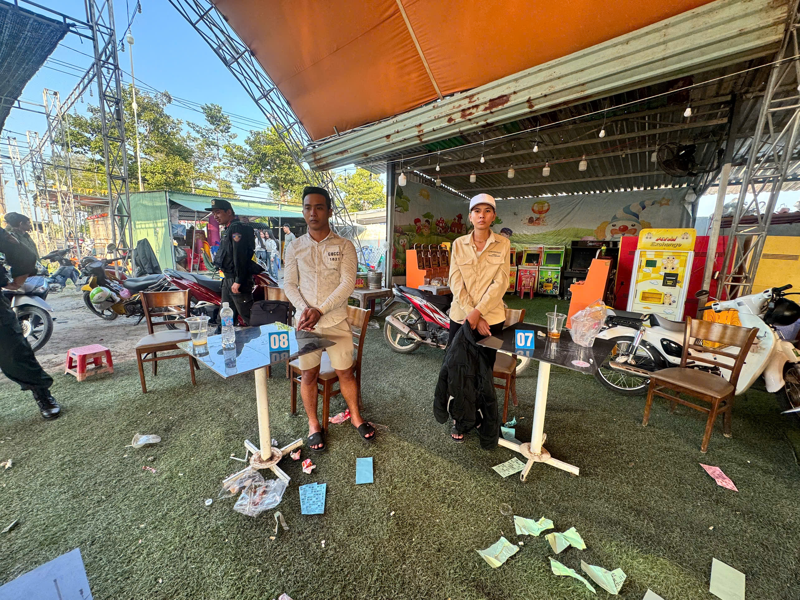 Trong đêm 7-3, lực lượng chức năng đồng loạt kiểm tra hai điểm của đoàn hội chợ này tại phường Tân Ninh và xã Tân Biên, phát hiện các gian hàng có hành vi gian dối, sắp đặt kết quả bốc thăm nhằm chiếm đoạt tiền của người chơi.