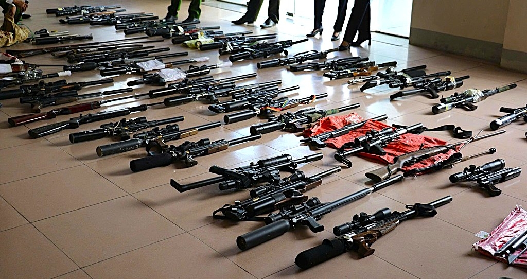 Tang vật thu giữ gồm 64 khẩu súng quân dụng, 28.720 viên đạn thuộc danh mục vũ khí quân dụng, 24 khẩu súng là công cụ hỗ trợ, 1.260 viên đạn bi và đạn cao su; 2 laptop, 42 điện thoại di động và các đồ vật khác có liên quan.