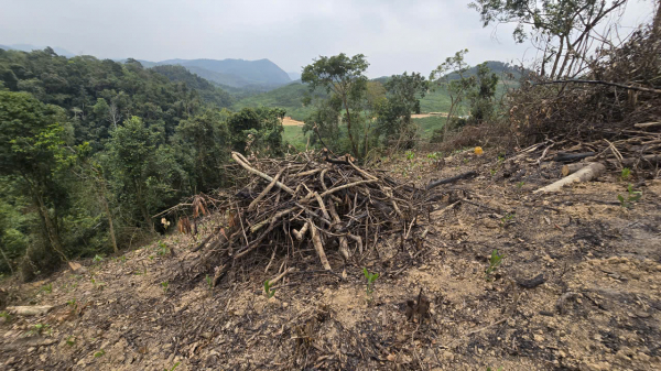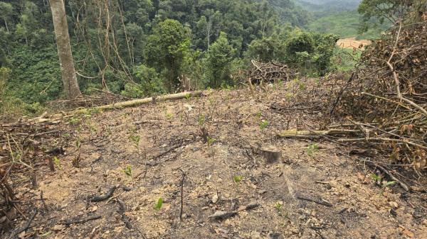 Trước đó, từ phản ánh của người dân địa phương, lực lượng chức năng đã vào cuộc kiểm tra, xác minh tình trạng rừng phòng hộ tại thôn Thành Trung bị xâm hại nghiêm trọng. Qua kiểm tra hiện trường, hàng loạt cây rừng tự nhiên với đường kính từ 10 đến 50cm bị chặt hạ, đốt phá. Nhiều diện tích rừng bị “xóa sổ”, chỉ còn trơ lại gốc cây và dấu vết cháy xém.