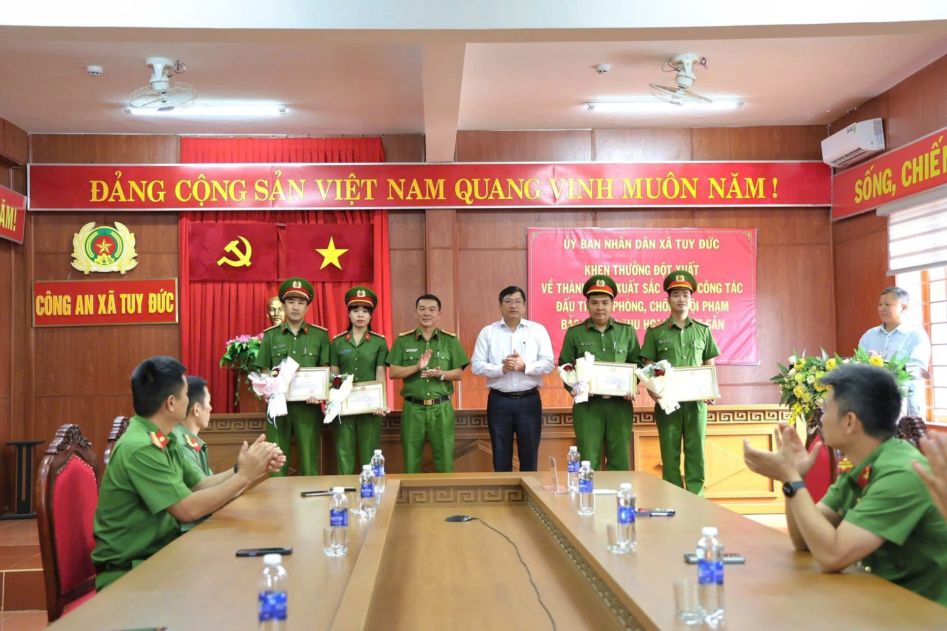 Ghi nhận tinh thần trách nhiệm, sự nhanh nhạy và đấu tranh, phòng chống tội phạm có hiệu quả của lực lượng Công an xã, UBND xã Tuy Đức đã khen thưởng tập thể Tổ phòng chống tội phạm Công an xã và 4 cá nhân có thành tích xuất sắc.