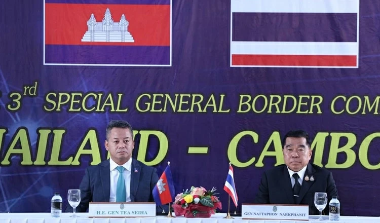 Bộ trưởng Quốc phòng hai nước Thái Lan và Campuchia tham gia cuộc họp ngày 27/12. (Nguồn: Khmer Times)