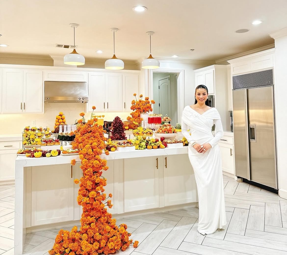 Trước đó, Phạm Hương còn tổ chức lễ Tạ ơn hoành tráng trong ngôi biệt thự trắng của gia đình
