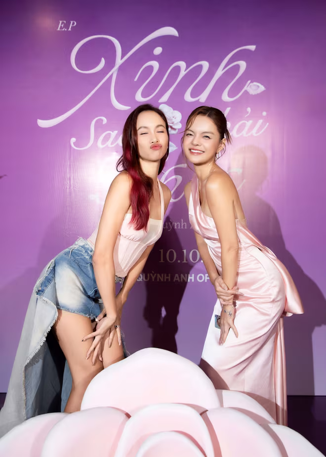 Buổi họp báo ra mắt EP "Xinh sao phải khóc" là dịp để các "anh tài, chị đẹp" hội ngộ sau hành trình "vượt chông gai, đạp gió". Bên cạnh đó, nhiều đồng nghiệp, bạn bè thân thiết của Phạm Quỳnh Anh cũng có mặt để chúc mừng sự trở lại đầy năng lượng của cô.