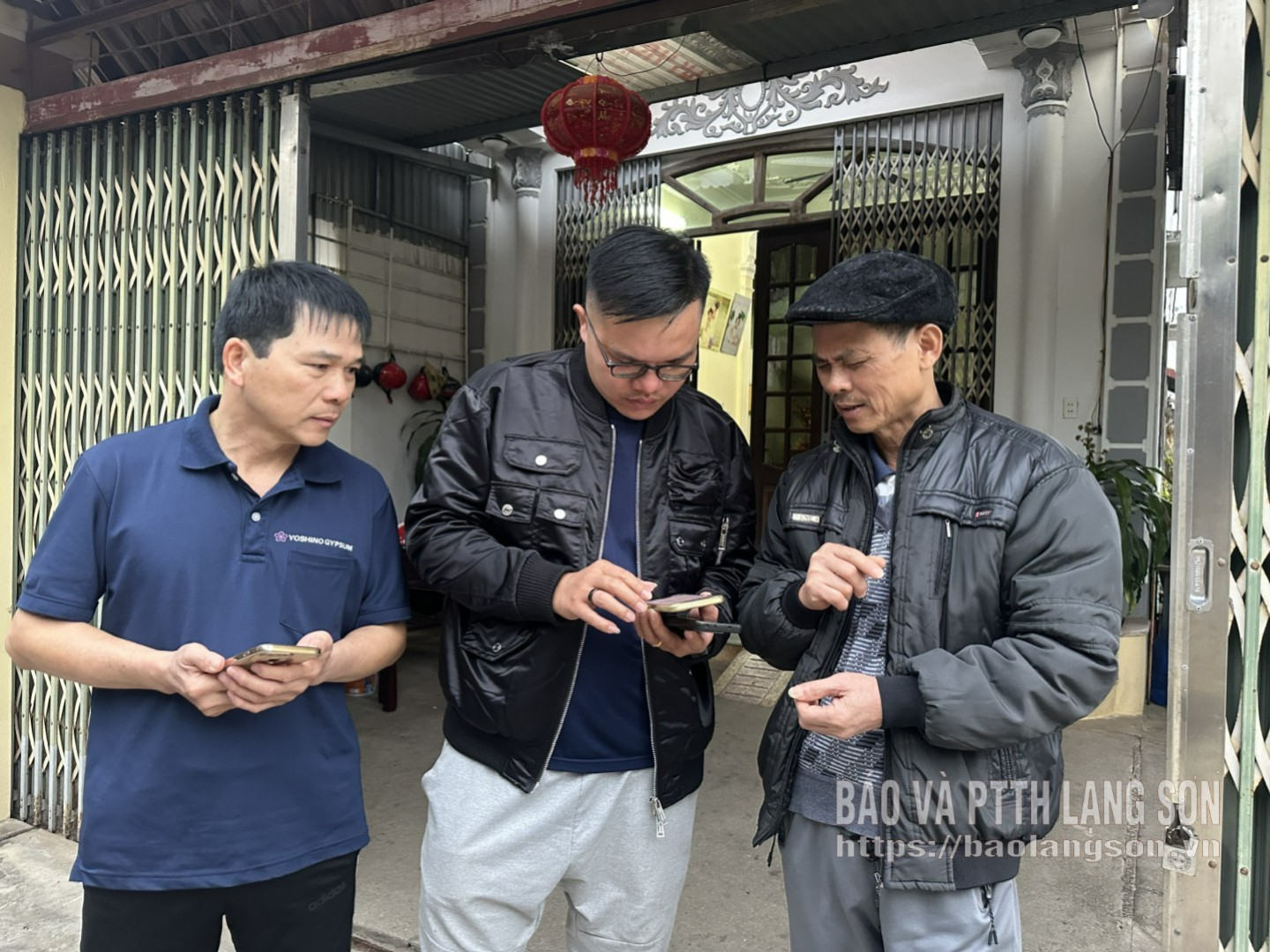 Thành viên tổ Công nghệ số cộng đồng phường Đông Kinh hướng dẫn người dân gửi phản ánh, kiến nghị thông qua nền tảng Công dân số Xứ Lạng