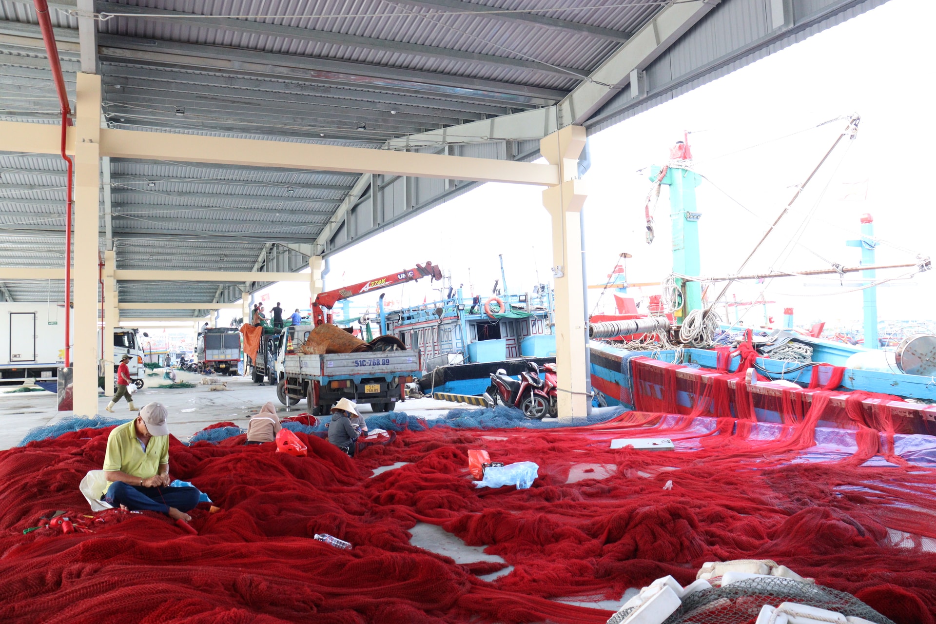 Số lượng tàu cá cập cảng cá Thọ Quang giảm hẳn so với trước đây. Ảnh: HOÀNG HIỆP