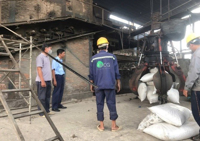 Lực lượng chức năng giám sát việc tiêu hủy 4,5 tấn phân bón vô cơ hỗn hợp không rõ nguồn gốc, xuất xứ tại An Giang