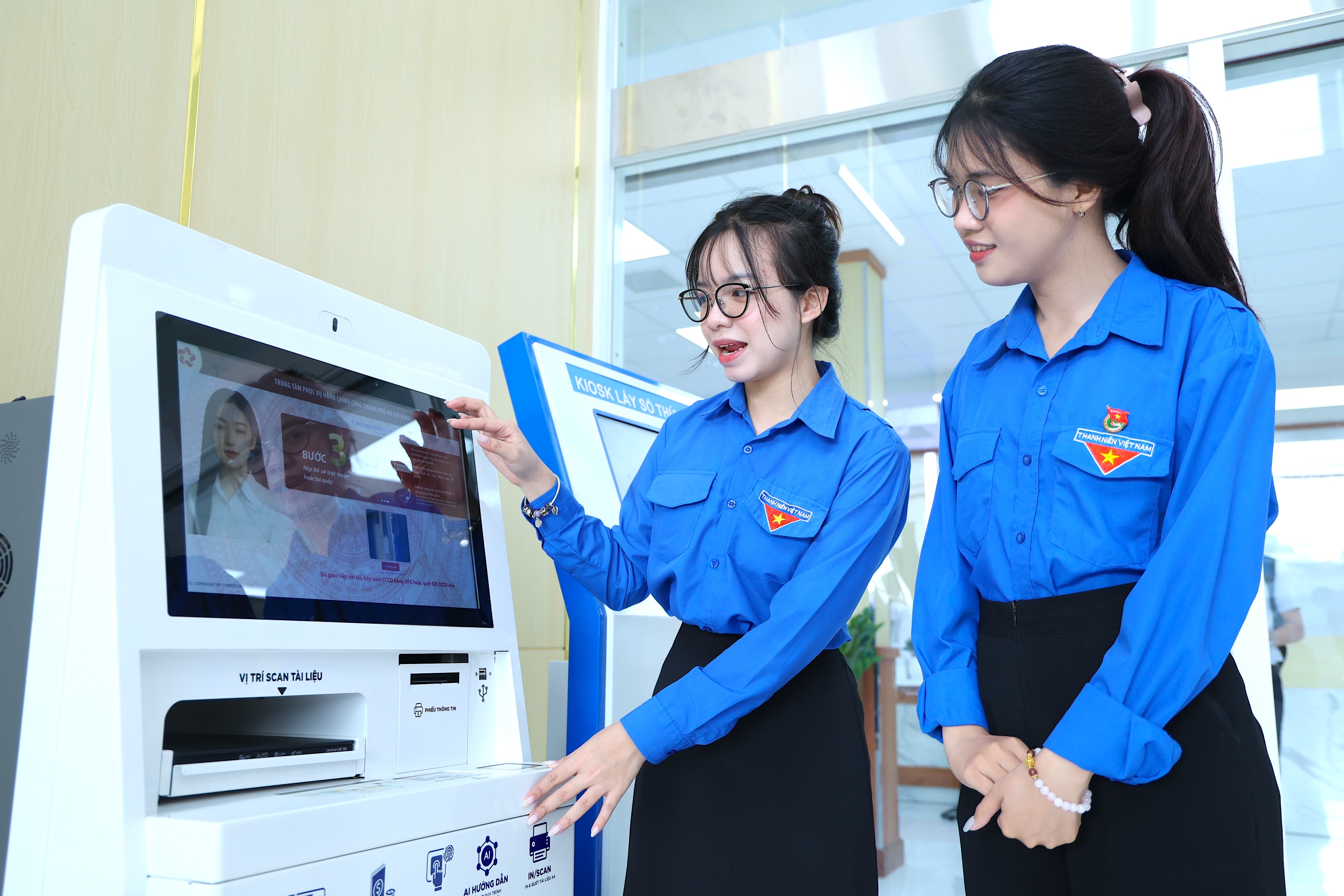 Cán bộ hỗ trợ người dân làm thủ tục hành chính. Ảnh: NGUYỆT NHI