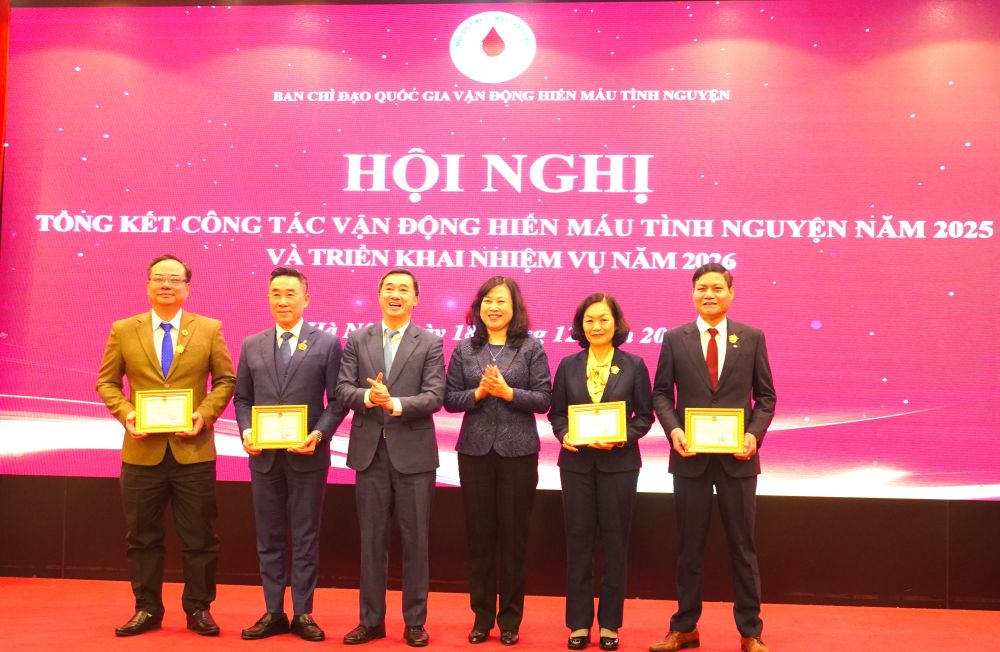 Ngoài ra, Ban Chấp hành Trung ương Hội Chữ thập đỏ Việt Nam đã trao Bằng khen cho 14 tập thể có thành tích xuất sắc trong công tác vận động HMTN năm 2025.