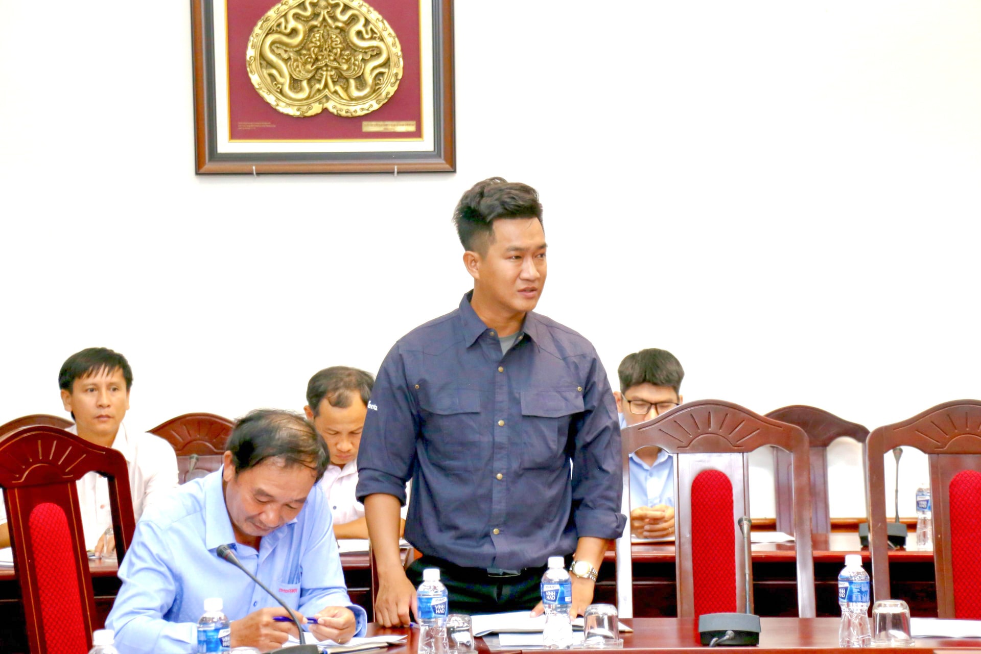 Đại diện đơn vị thi công báo cáo tại cuộc họp