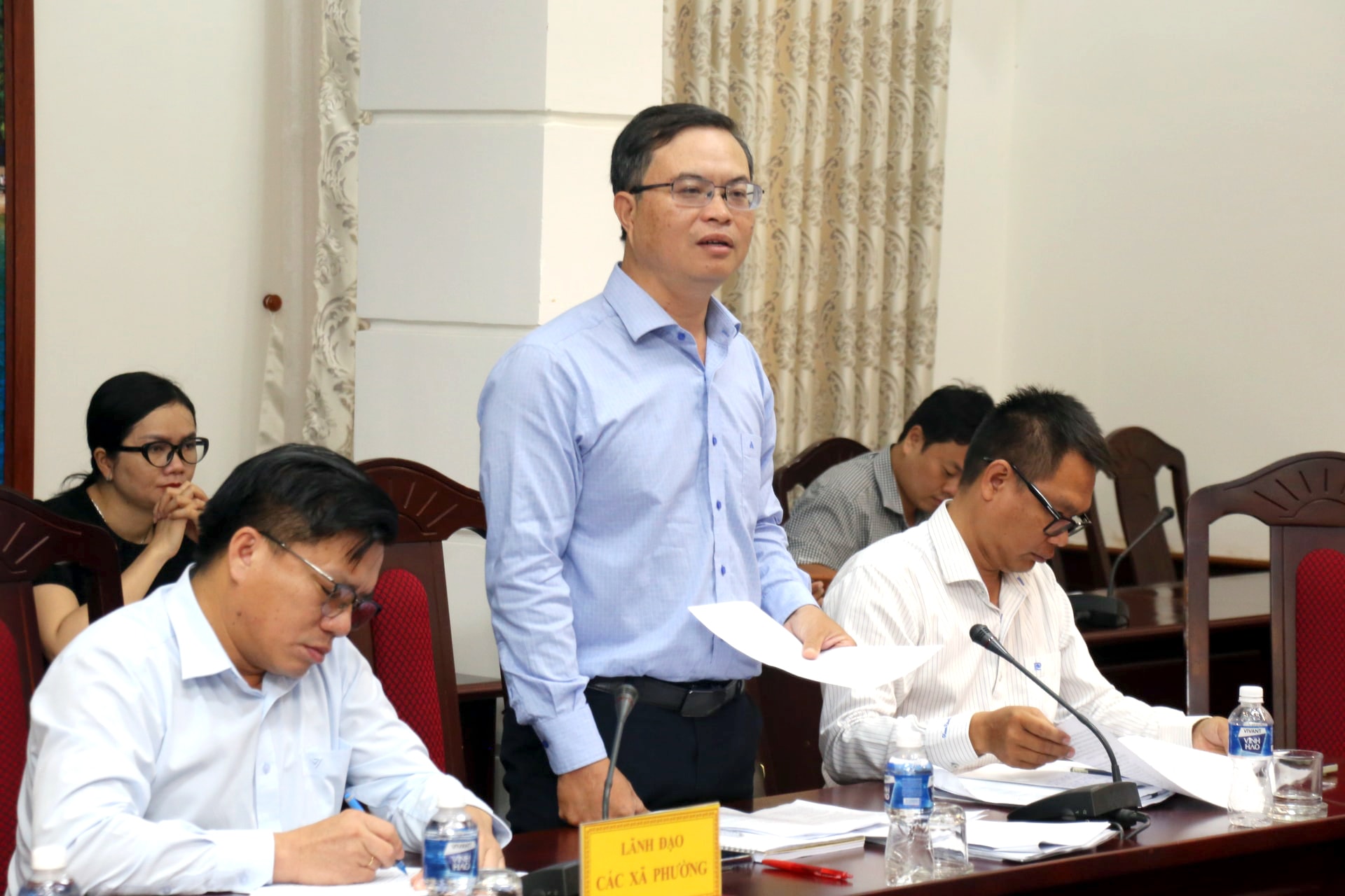 Đại diện lãnh đạo phường Bình Thuận báo cáo tại cuộc họp
