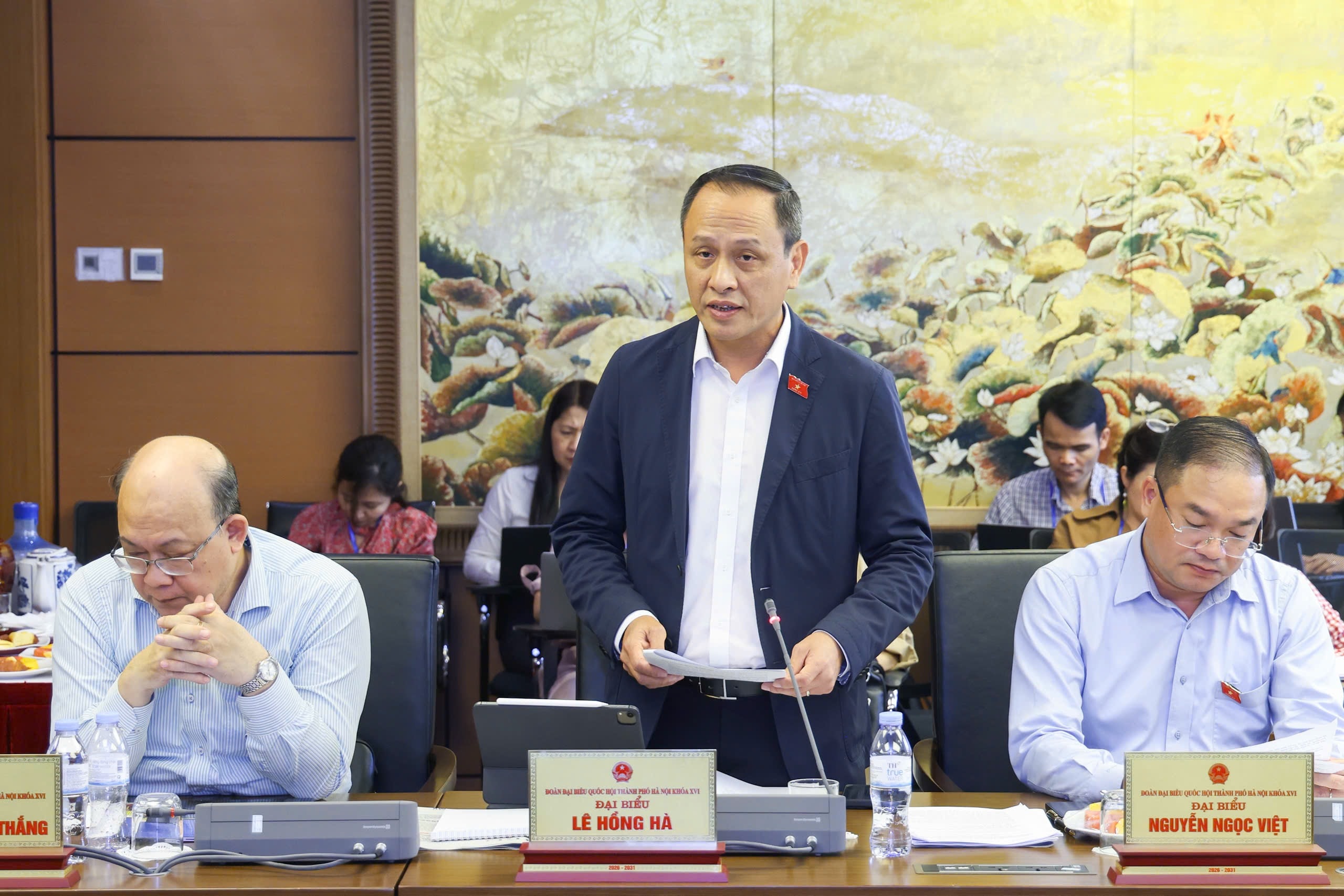 Đại biểu Quốc hội Lê Hồng Hà (TP. Hà Nội) phát biểu thảo luận tại tổ. Ảnh BN
