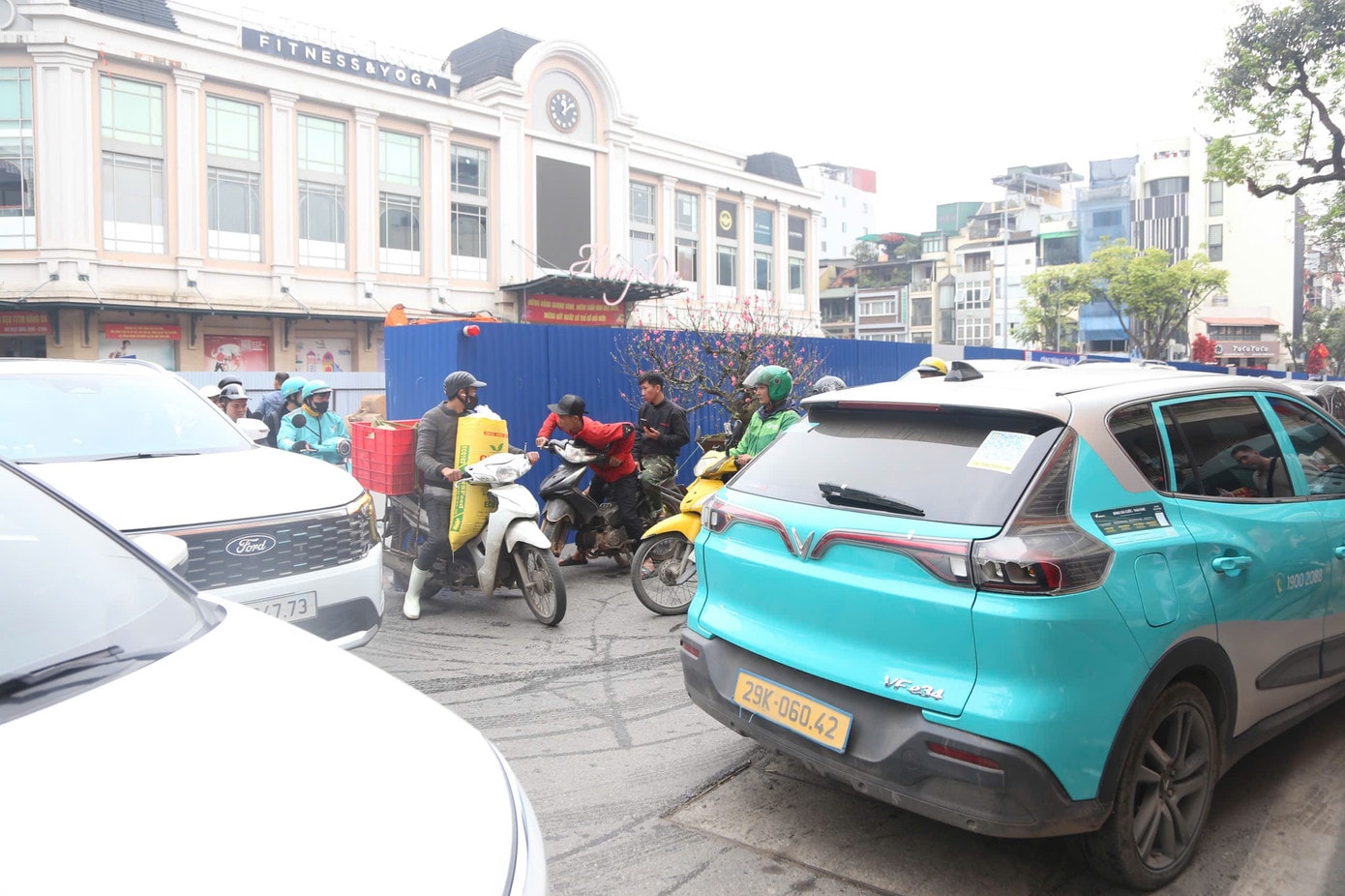 Khu vực trước cửa chợ Hàng Da đã được nhà thầu rào chắn. Ảnh: Trần Hoàng
