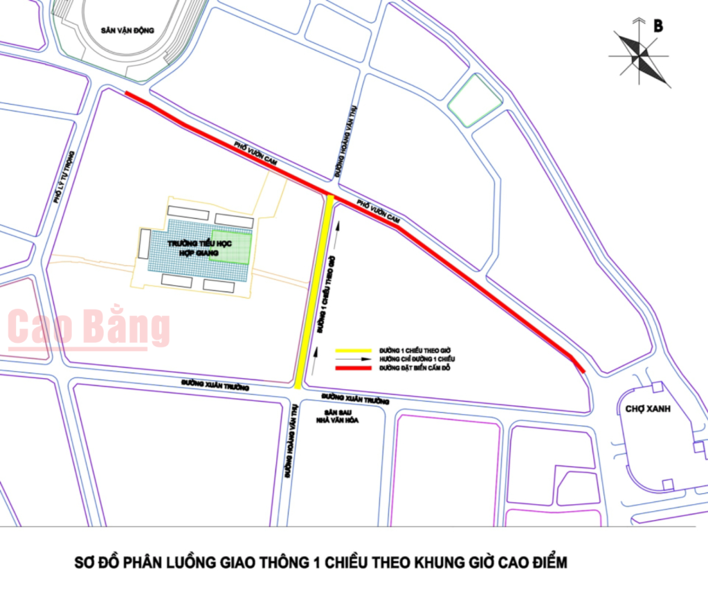 Cấm các phương tiện ô tô lưu thông theo hướng từ ngã tư Hoàng Văn Thụ - Vườn Cam đến ngã tư Hoàng Văn Thụ - Xuân Trường trong các khung giờ cao điểm: