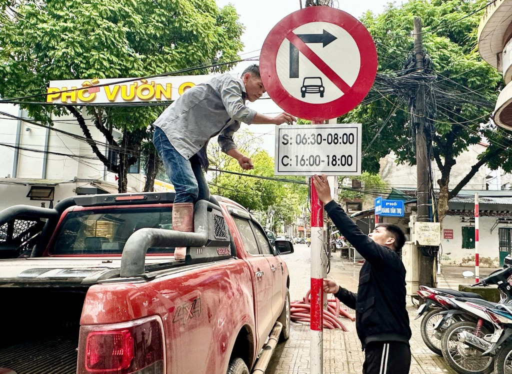 2. Tổ chức cắm biển cấm đỗ xe một bên đường tại tuyến phố Vườn Cam: