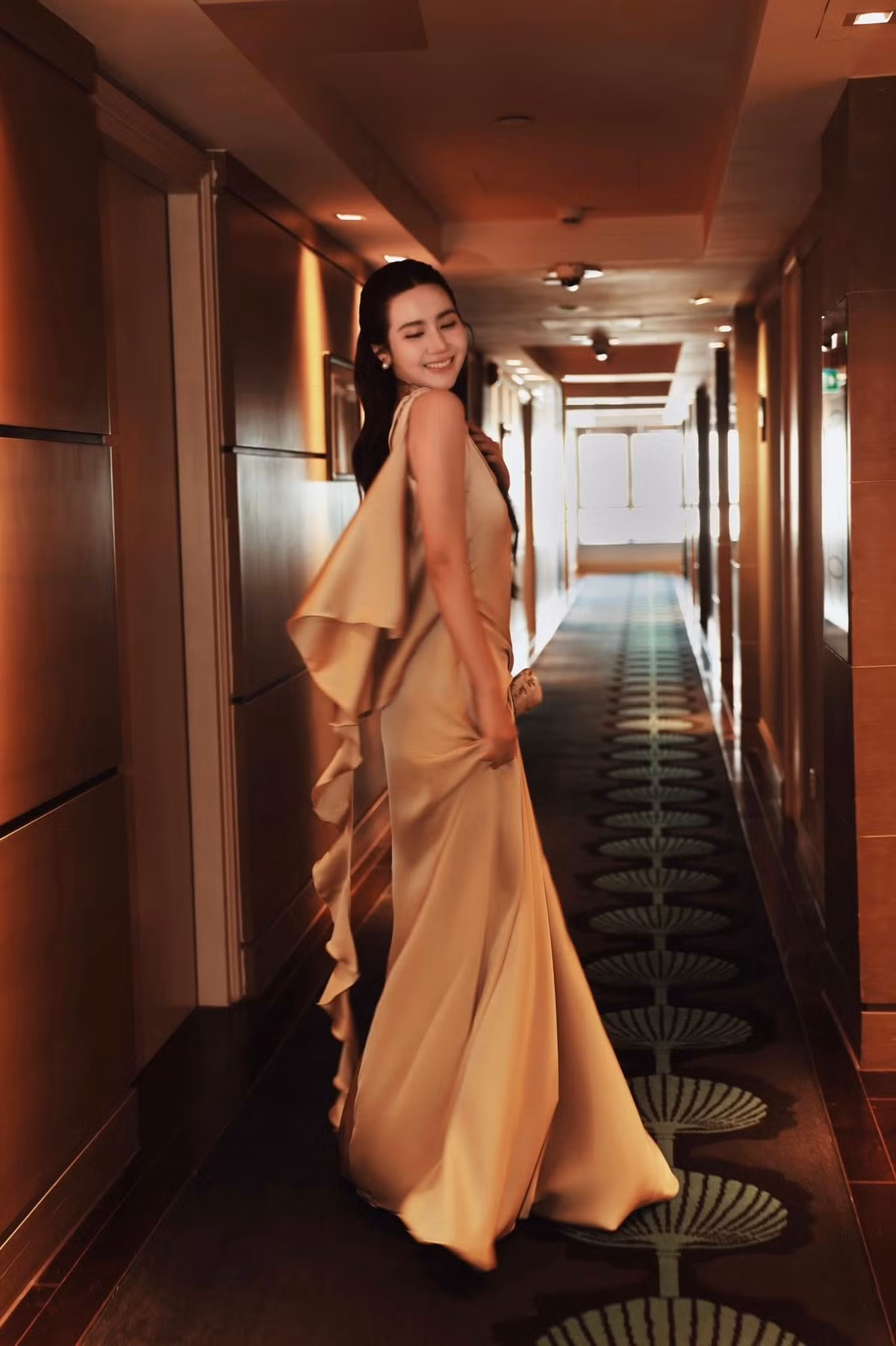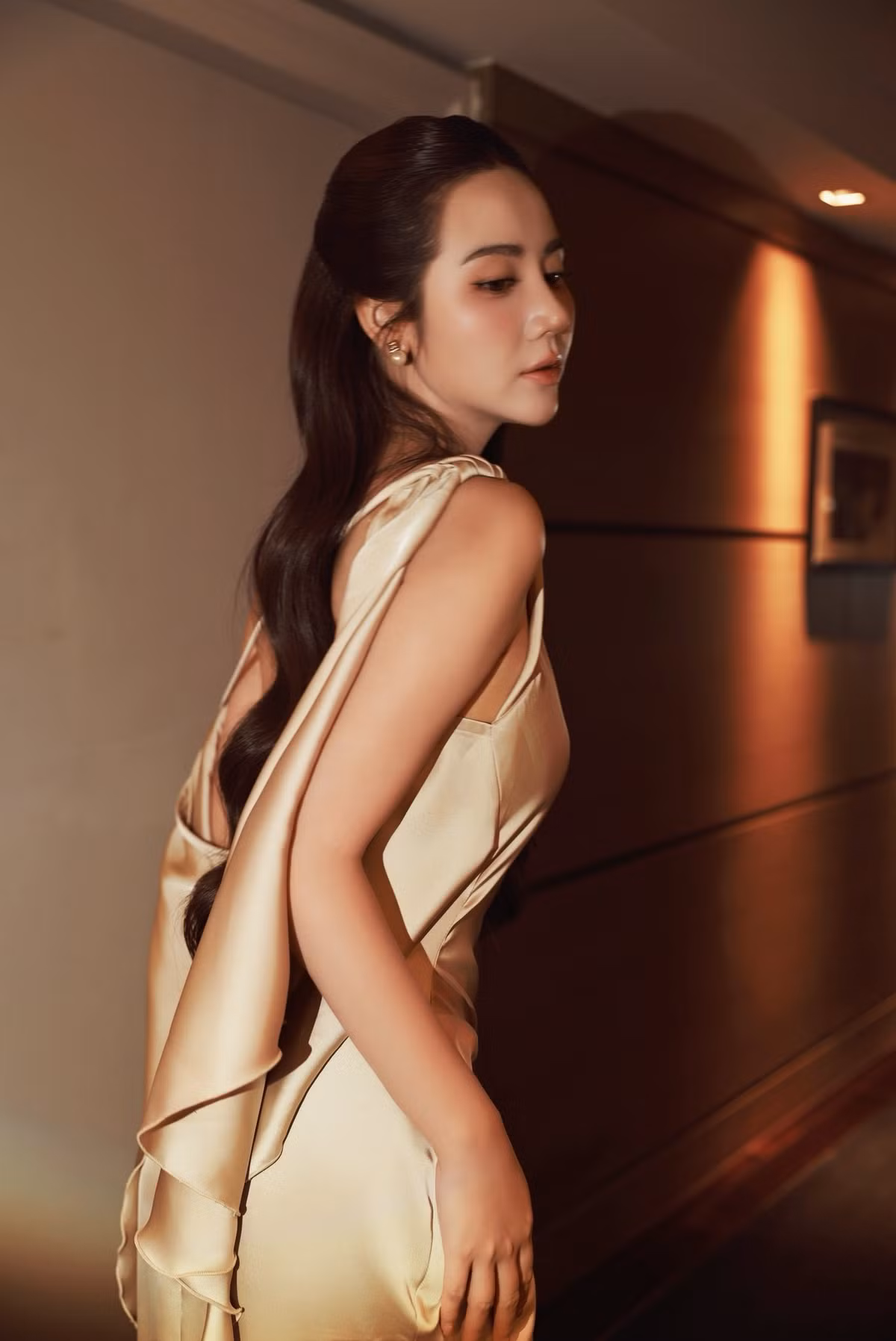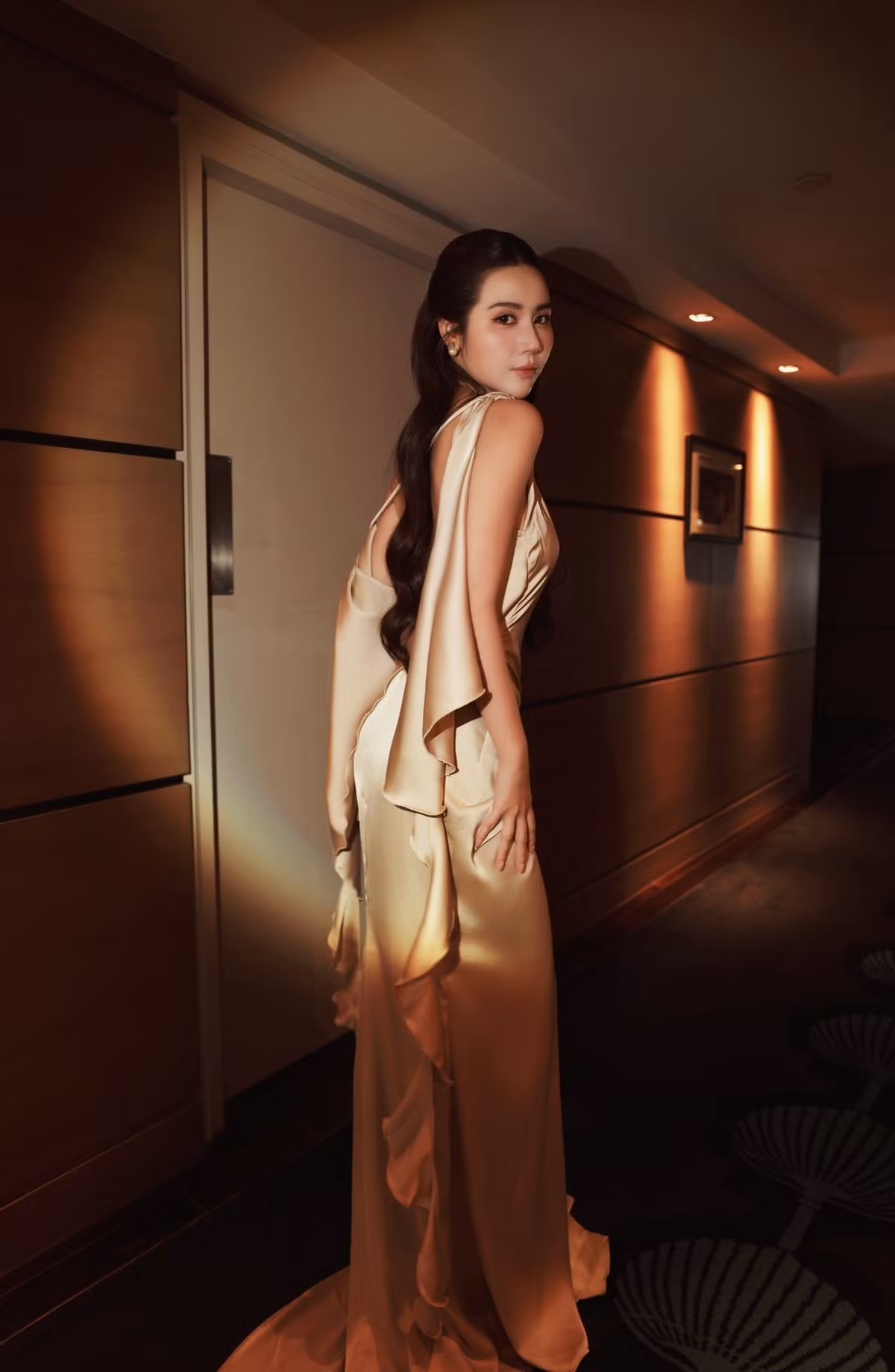 Điểm nhấn đắt giá nhất của trang phục chính là thiết kế hở trọn phía sau, giúp nữ diễn viên khoe trọn tấm lưng ong nõn nà và làn da mịn màng không tì vết.