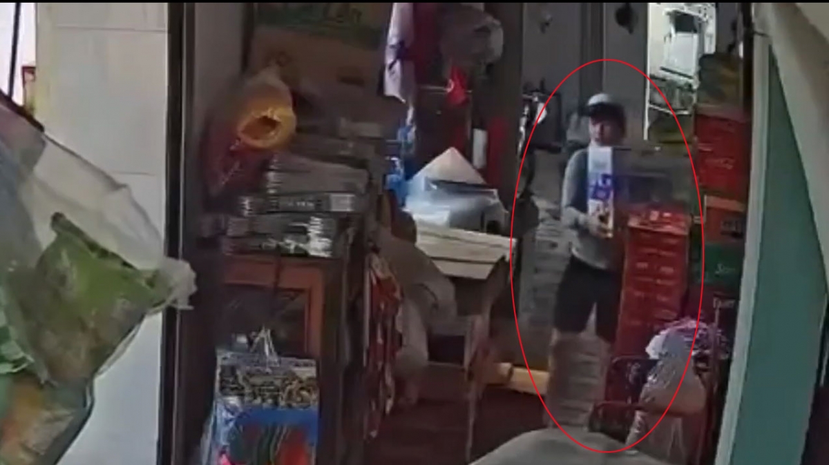 Nam thanh niên vào tạp hóa ôm ra 3 thùng bia (ảnh cắt từ video chia sẻ MXH)