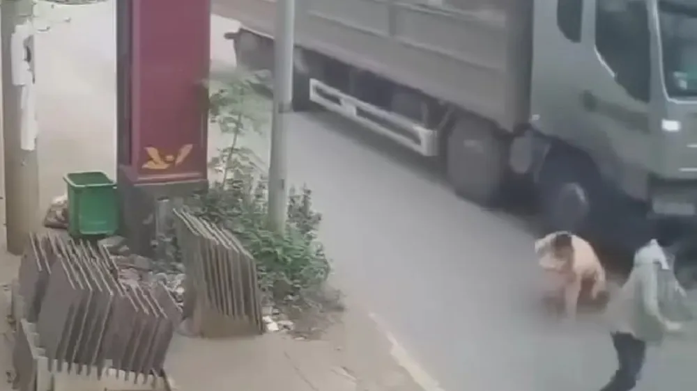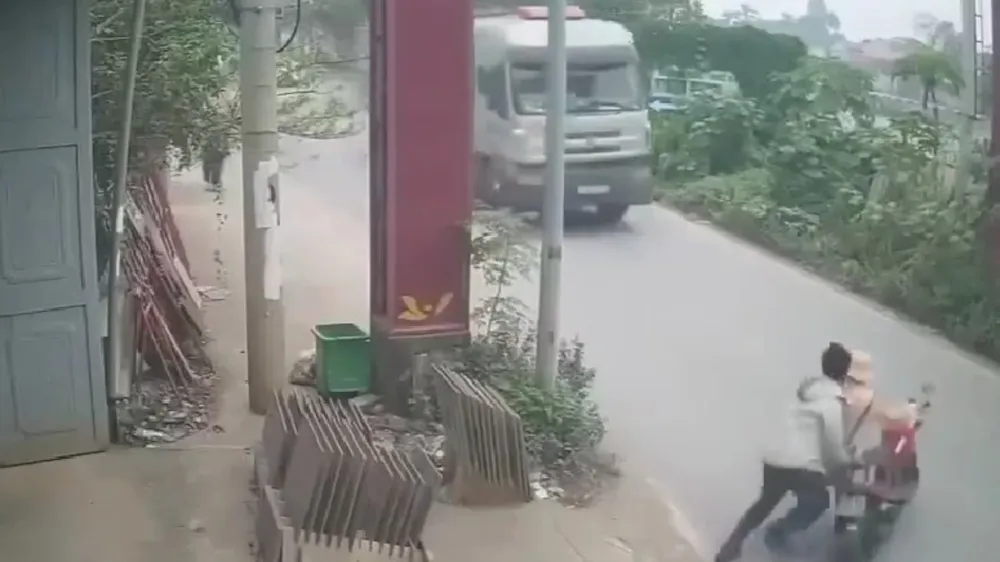 Khi CSGT đang dắt chiếc xe máy điện vi phạm thì bị người đàn ông đẩy ra đường lúc xe tải đang lao tới.