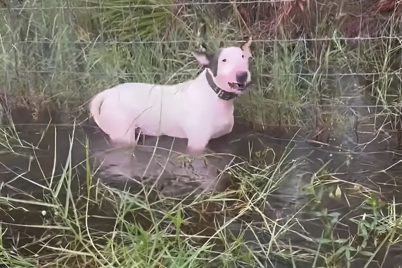 Chú chó con được tìm thấy khi nước đã dâng lên tới ngực. Ảnh: DailyMail.