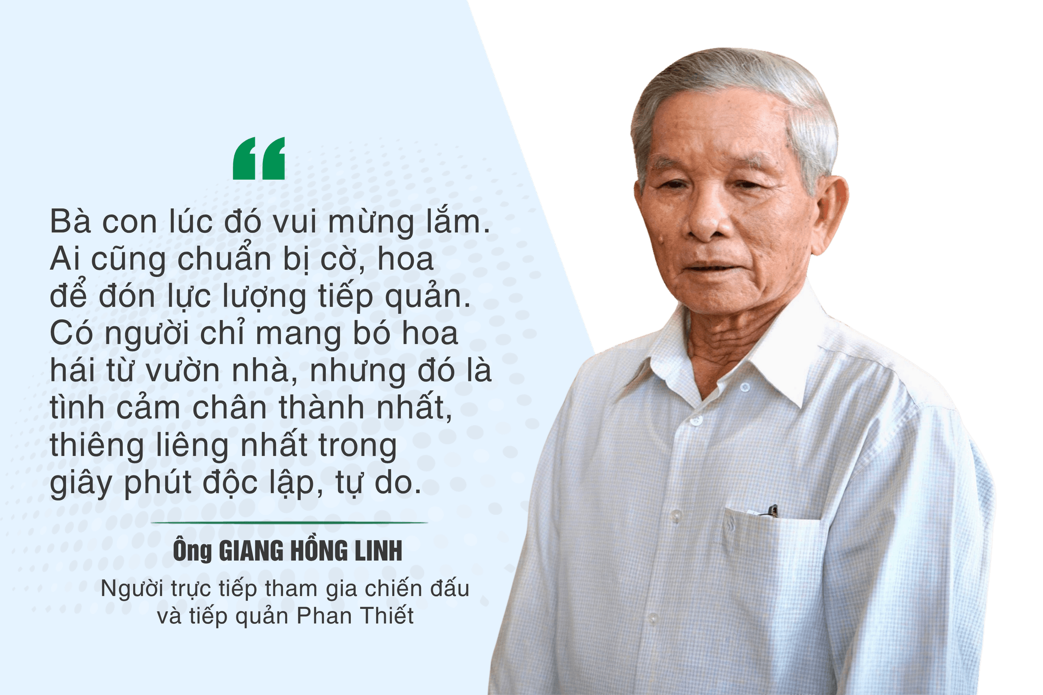 Ông Giang Hồng Linh (SN 1947, hiện sinh sống tại phường Phú Thủy) là một trong những người trực tiếp tham gia chiến đấu và tiếp quản Phan Thiết.