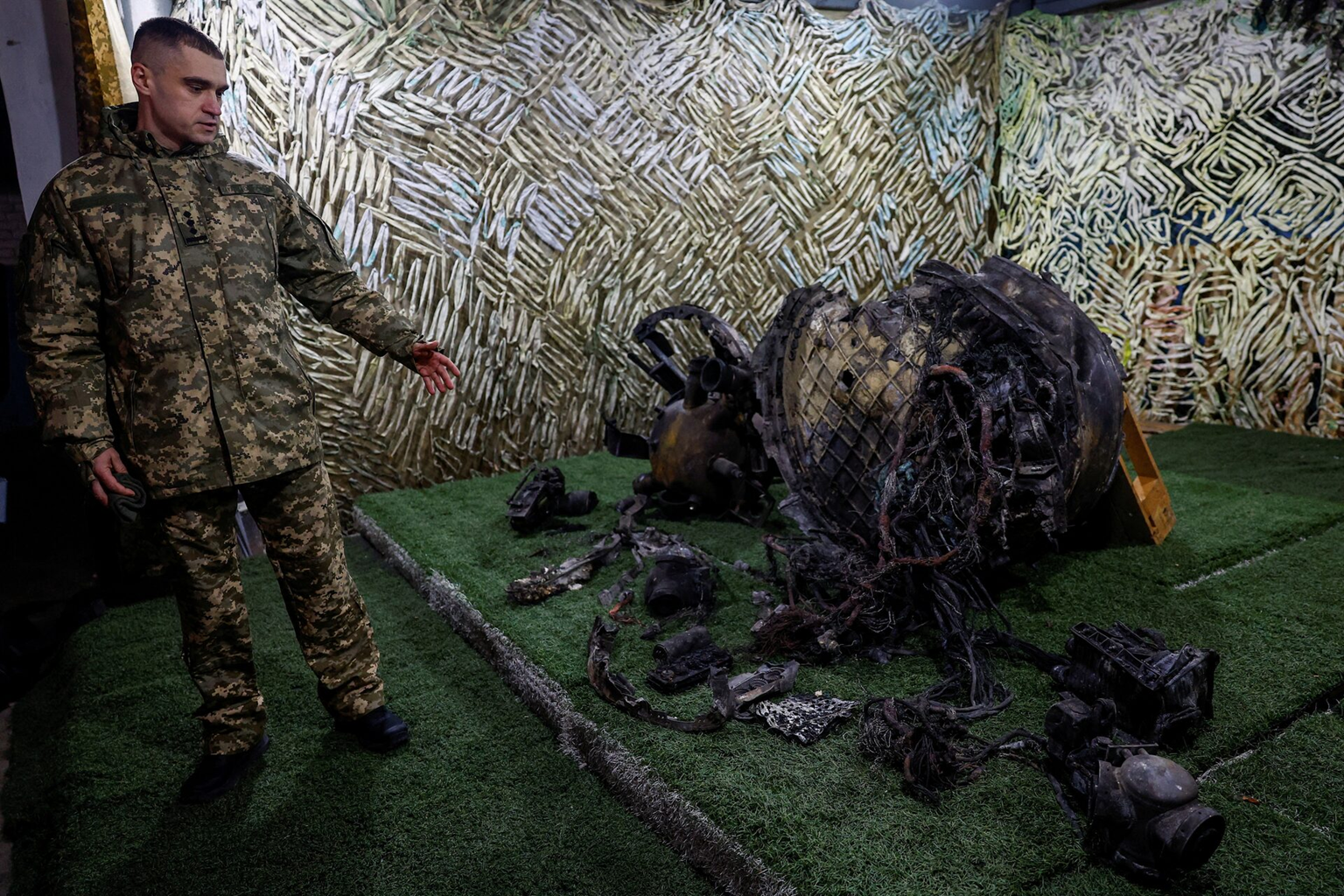 Các bộ phận của một tên lửa đạn đạo mà Nga đã sử dụng trong cuộc tấn công nhằm vào thành phố Dnipro