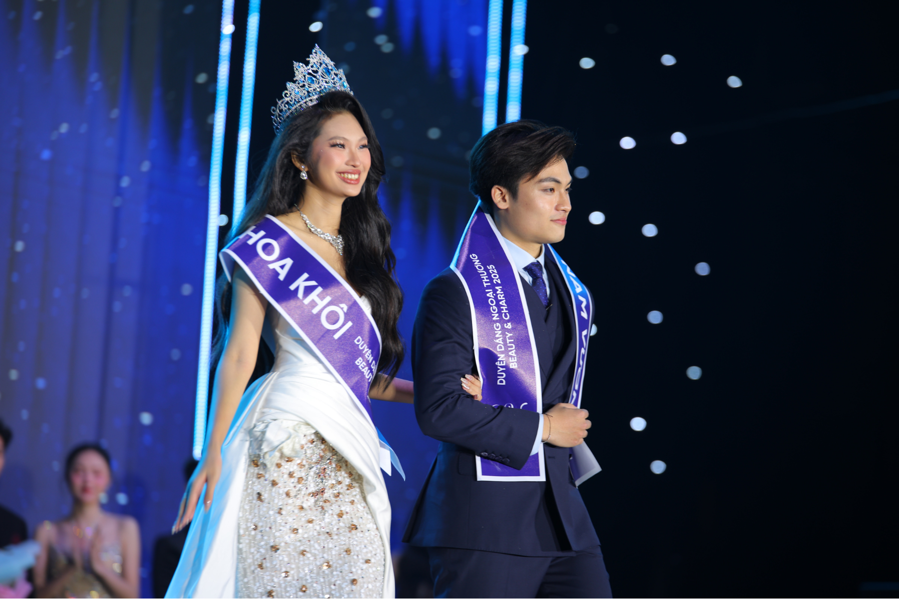 Hoa khôi Duyên dáng Ngoại thương 2025 và Nam vương Ngoại thương 2025. Ảnh: BTC