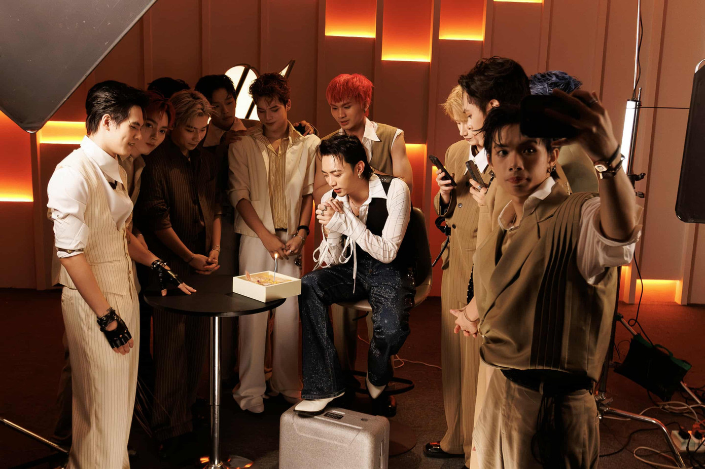Trái ngược với hình ảnh nghiêm nghị trên lớp học, những khoảnh khắc hậu trường lại cho thấy một SOOBIN gần gũi, vui vẻ. Dịp sinh nhật vừa qua, các tân binh đã bất ngờ tổ chức màn "đánh úp" mừng tuổi mới, tạo nên khoảnh khắc ấm áp.