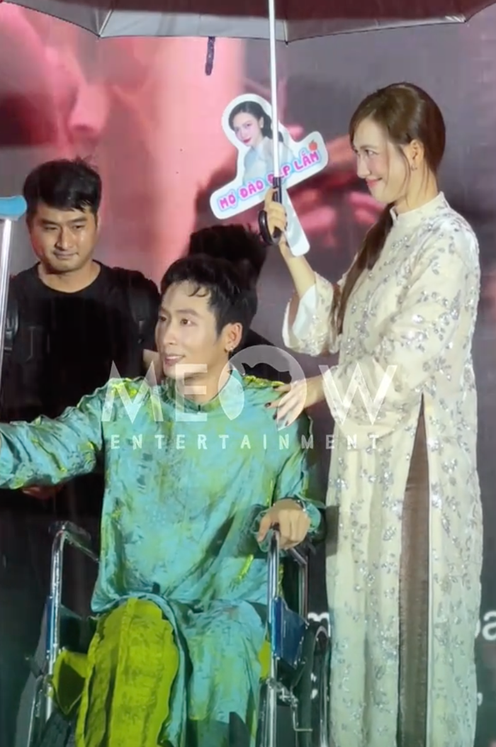 Khoảnh khắc Phương Anh Đào che dù cho Tuấn Trần ngay lập tức thu hút sự chú ý từ công chúng (Ảnh: Chụp màn hình TikTok Meow Entertainment).