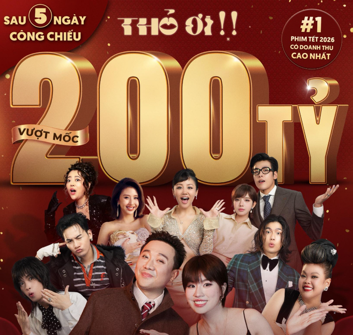 Với mốc doanh thu 200 tỷ đồng chỉ sau 5 ngày cùng loạt phản hồi trực tiếp, đa chiều từ khán giả, Thỏ Ơi!! đang cho thấy sức lan tỏa rõ rệt trong mùa phim Tết 2026, đồng thời tiếp tục khẳng định vị thế phòng vé của Trấn Thành trong bức tranh điện ảnh Việt hiện tại.
